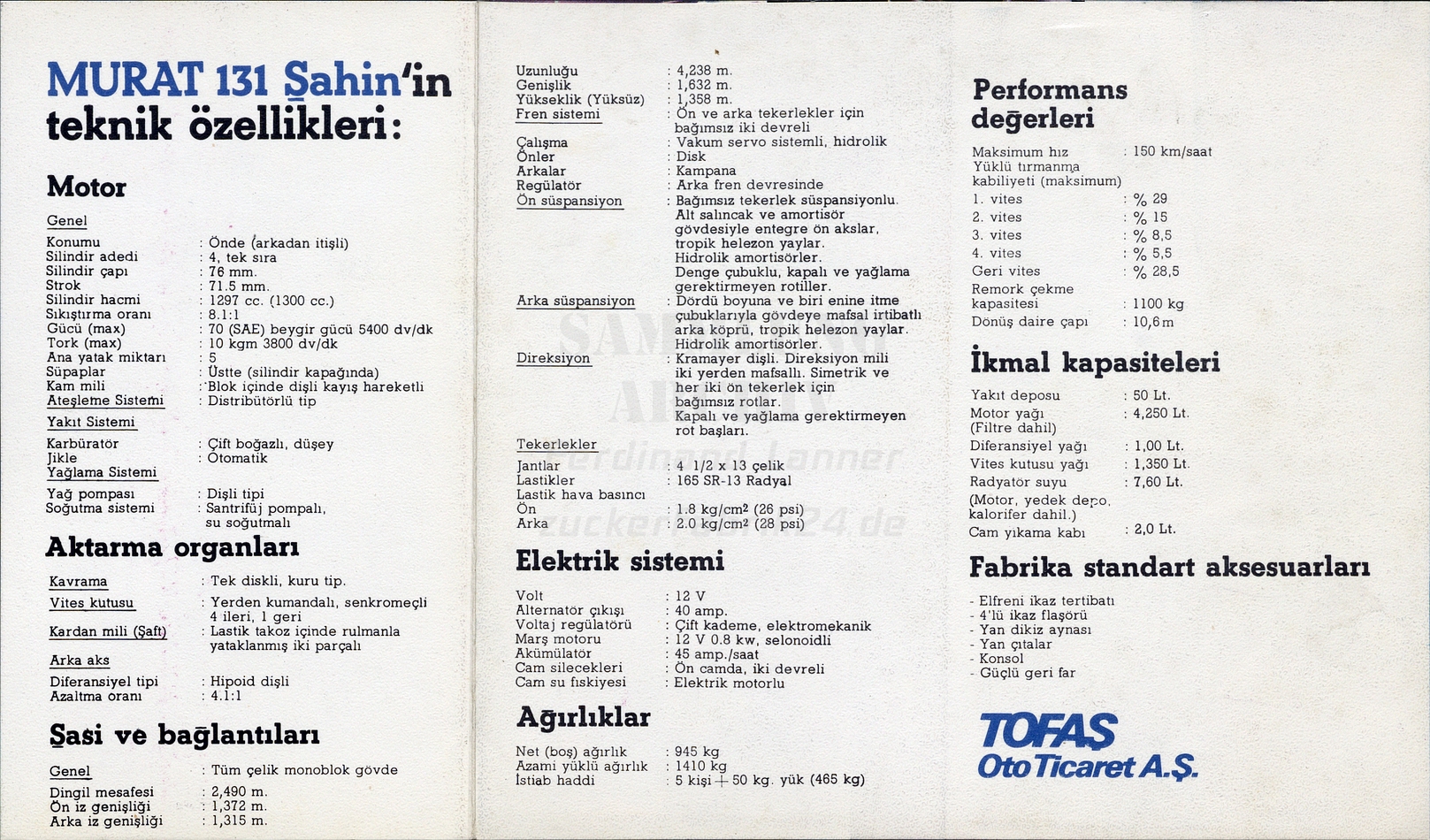 Prospekt Tofas - Murat 131 Sahin - ca.1977 - TR