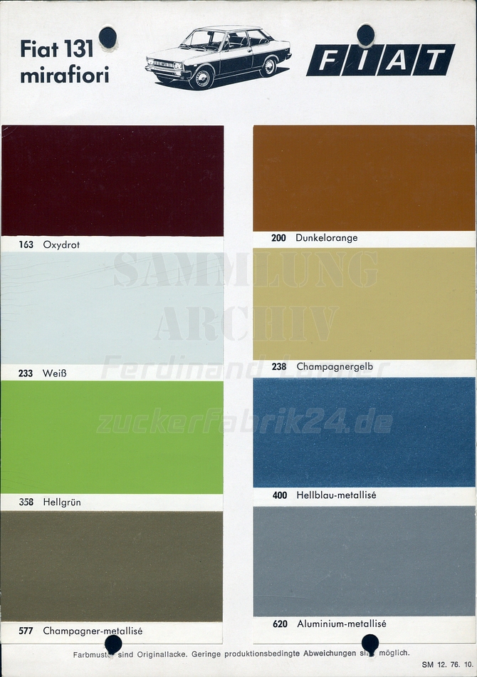 - siehe auch Fiat Programm Prospekte und Preislisten ab 1970 -