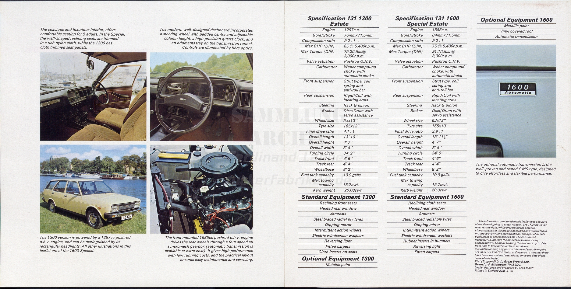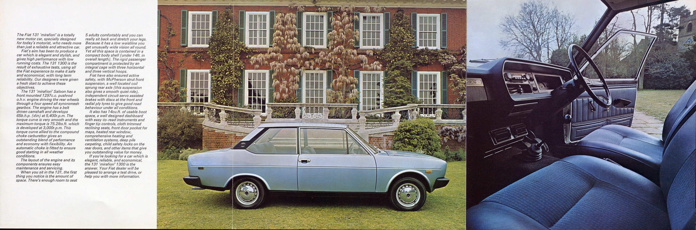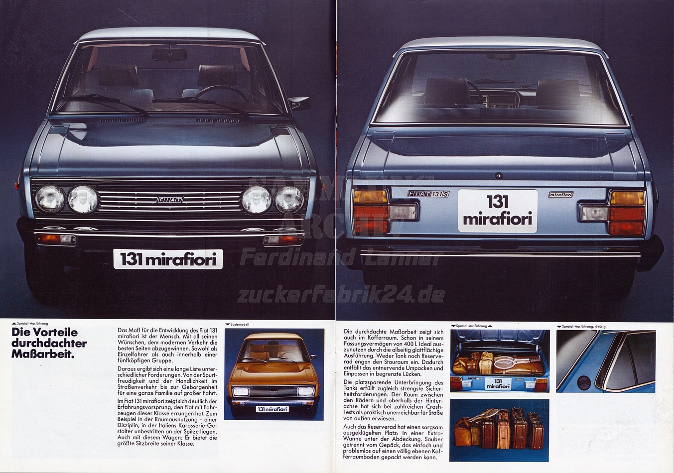 Es gab den 131 Mirafiori als 2- und 4- türige Limousine und als 5-türigen Kombi. Alle Versionen mit 1300 Motor und mit 1600 Motor und in 2 Ausstattungsversionen.