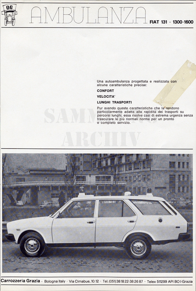 Prospekt Fiat 131 - Ambulanza - Carr. Grazia - ca.1976 - I