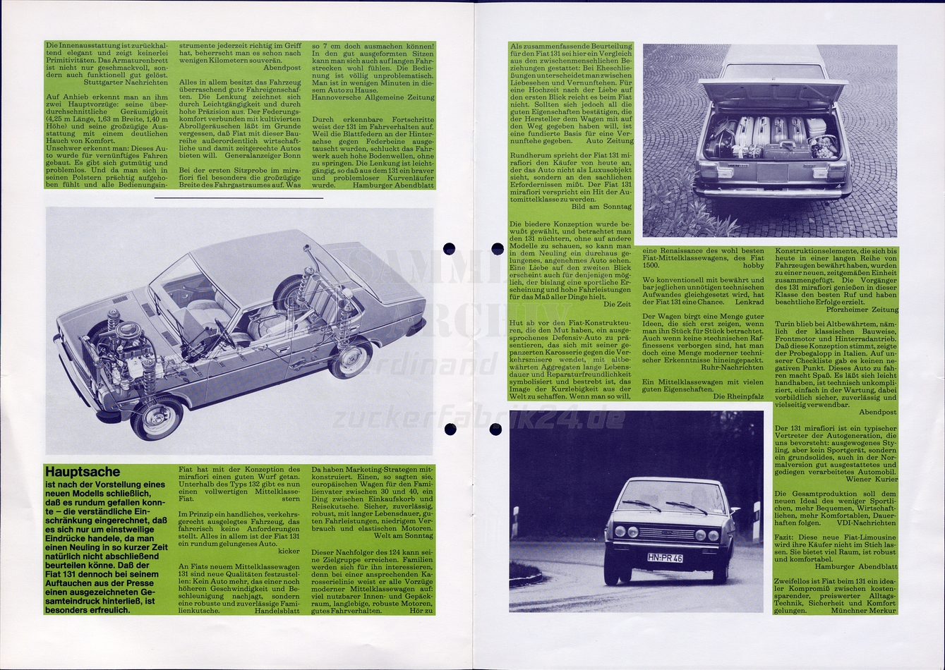 Prospekt Fiat 131 - Pressestimmen - deutsche Fiat - 1975