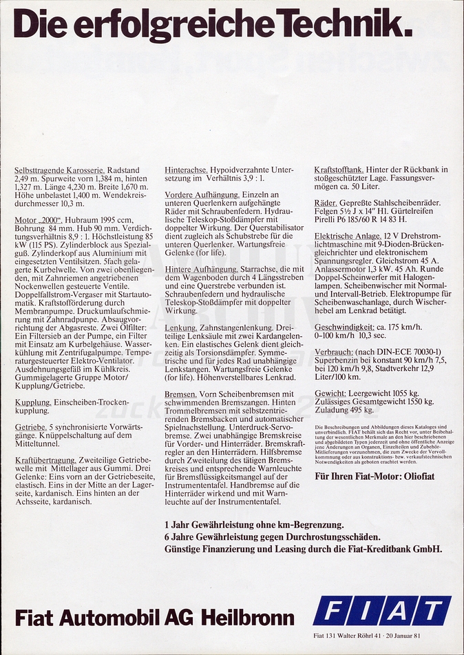 Prospekt Fiat 131 Sport 'Walter Röhrl' - deutsche Fiat - 1-1981