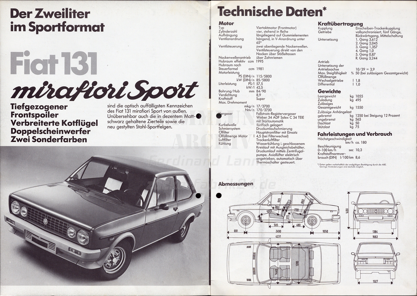 Prospekt Fiat 131 Sport - deutsche Fiat - 6-1978