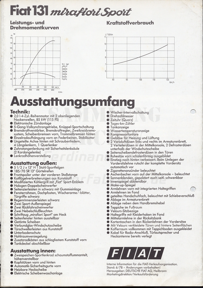Händlerinformation Fiat 131 Sport - deutsche Fiat - 6-1978
