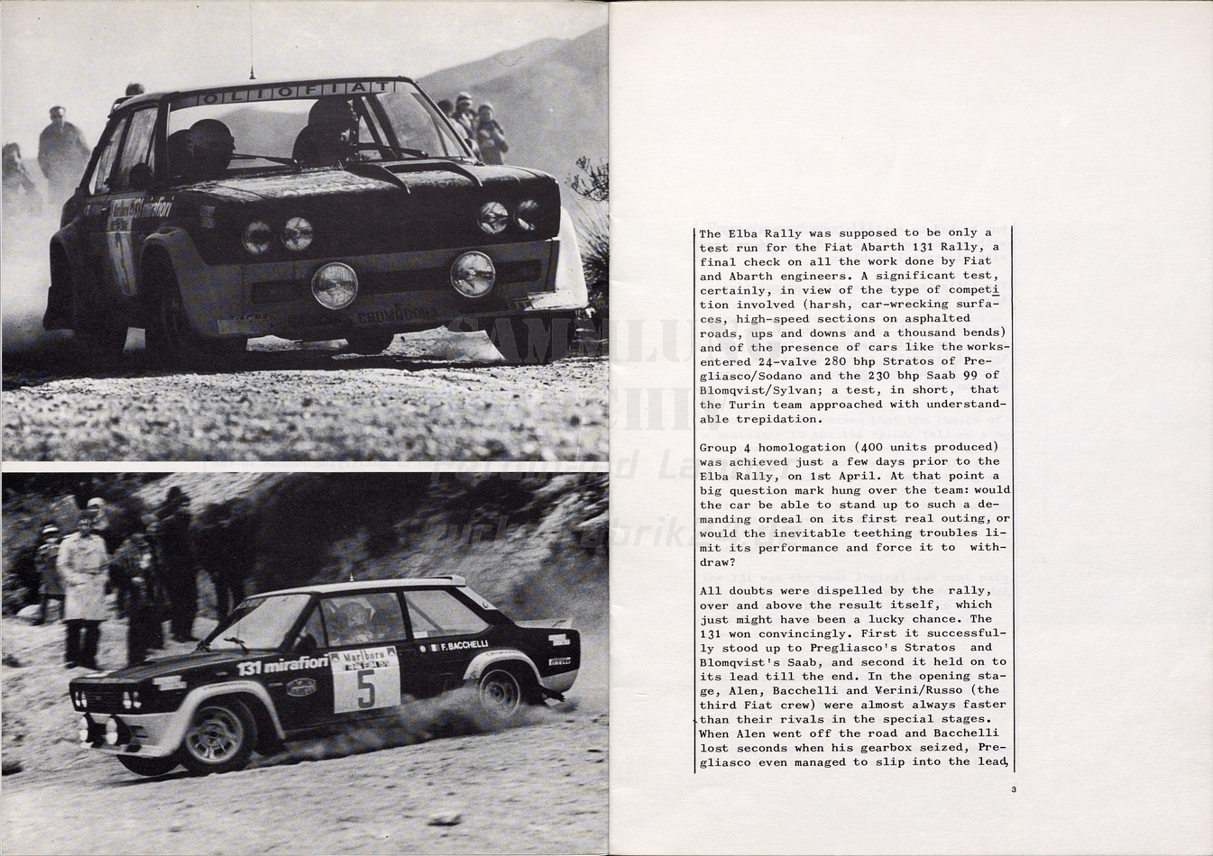 Der in der Folge sehr erfolgreiche Fiat Abarth 131 brachte der Fiat drei Markenweltmeisterschaften in der Rallye-WM einbrachte.