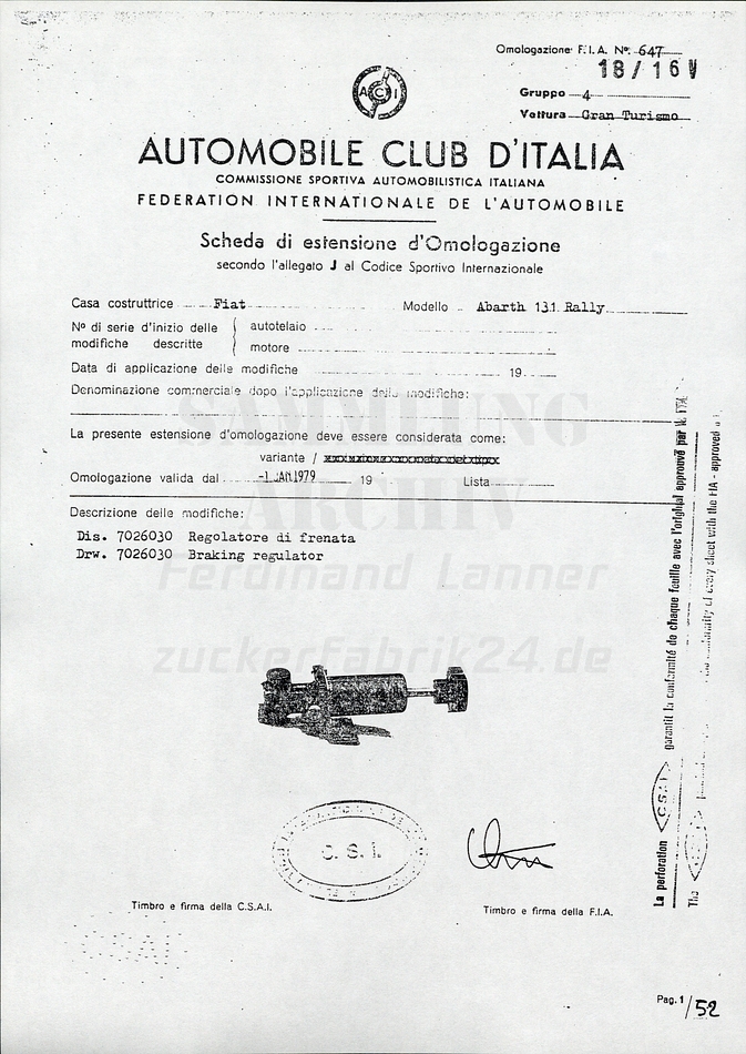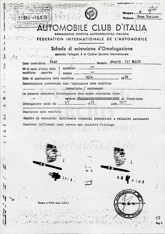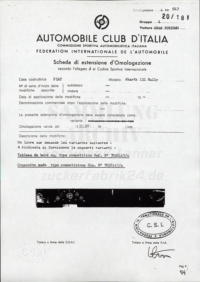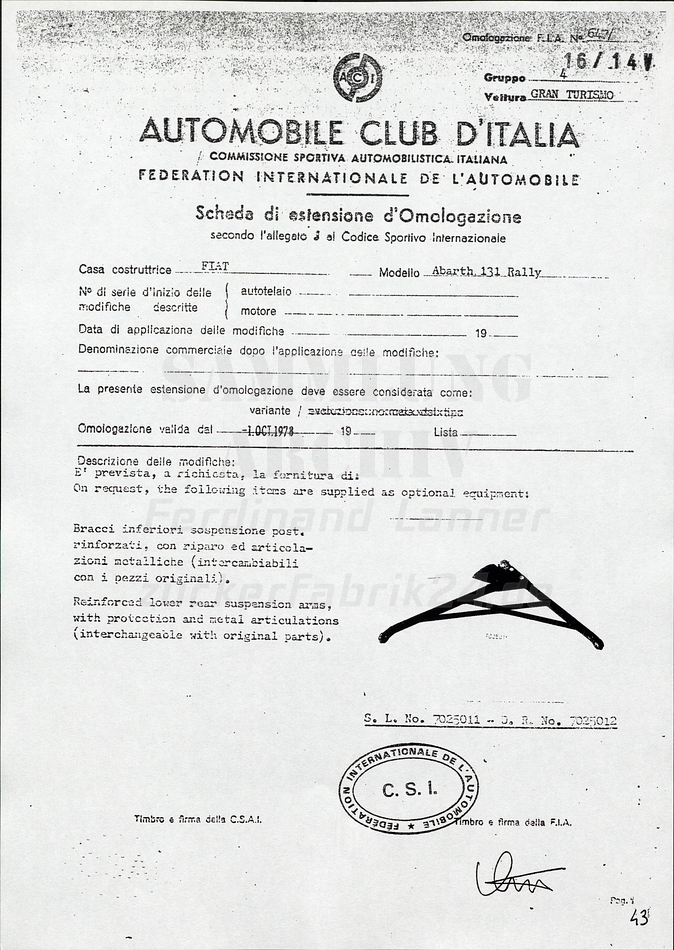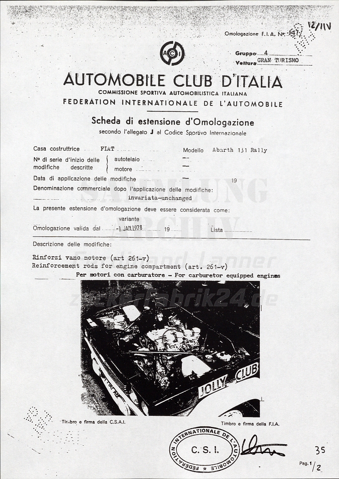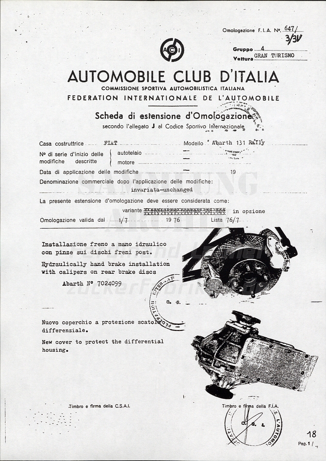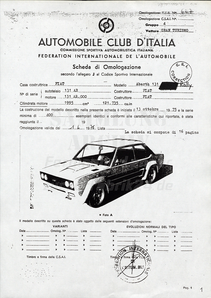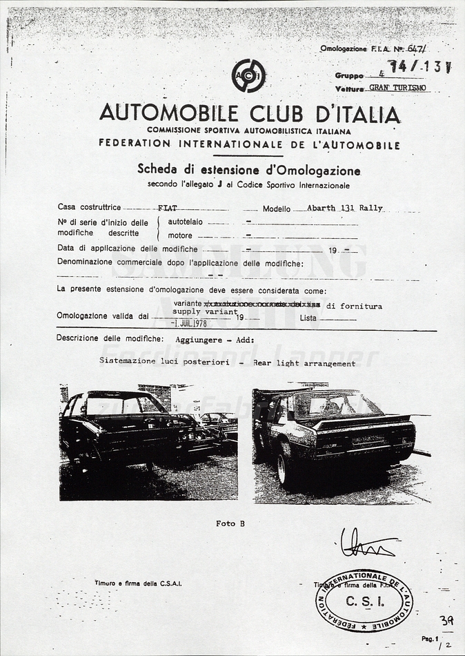 Die Homologationsversion Fiat Abarth 131 Rally 'Stradale' (min. 400 Stück für Gruppe 4-Homologation) wurde mit