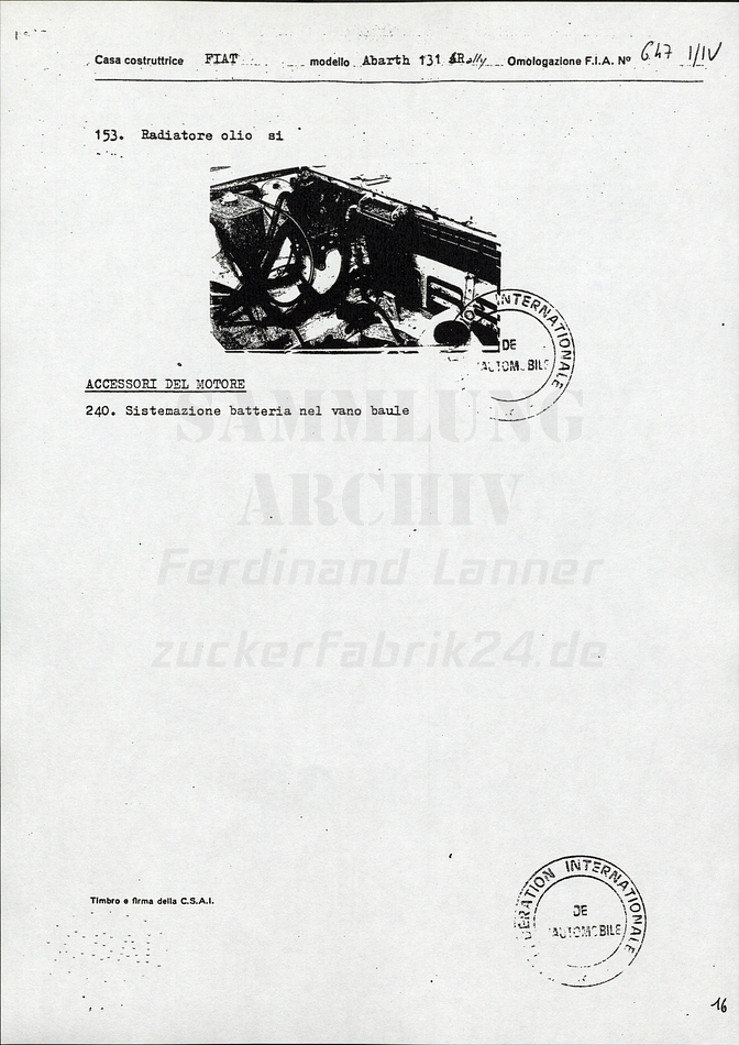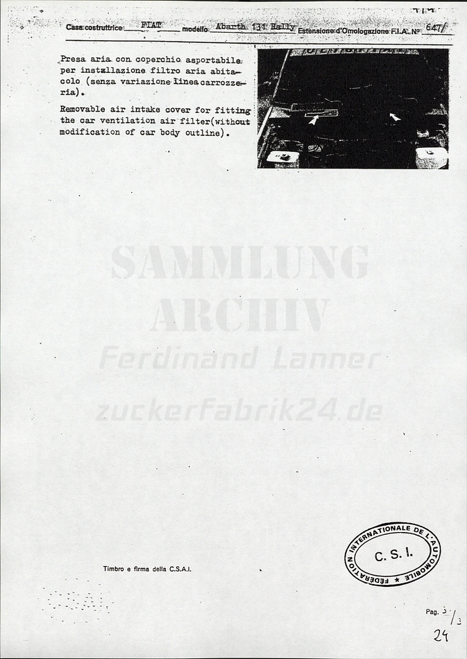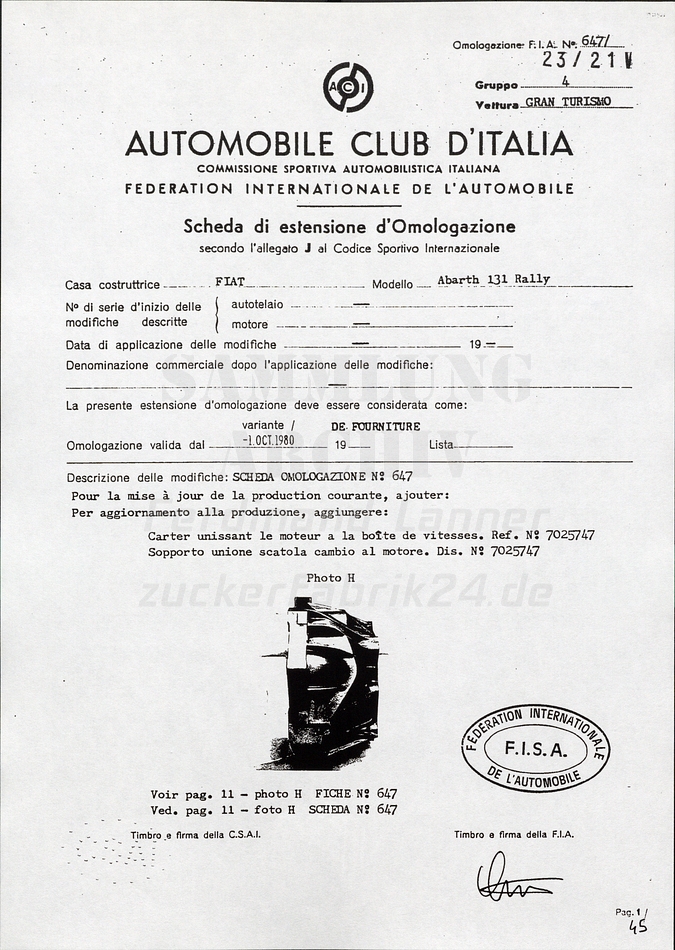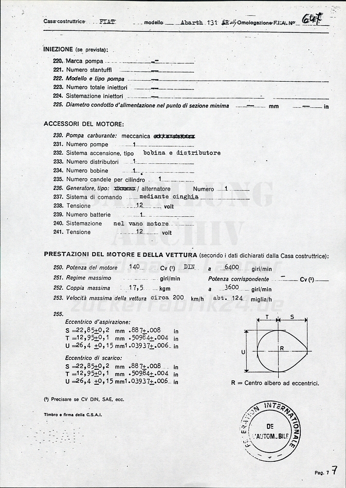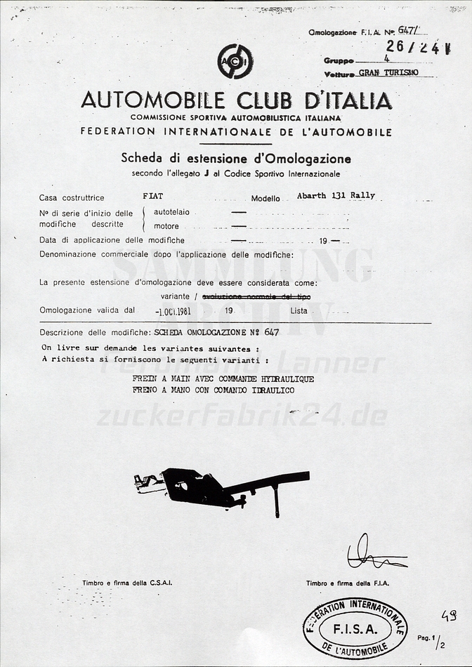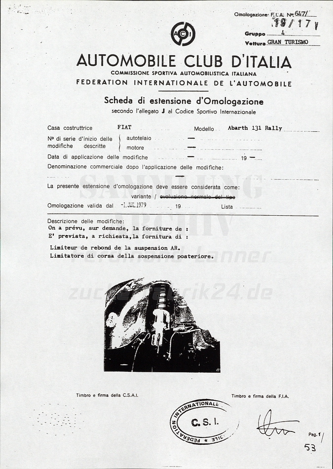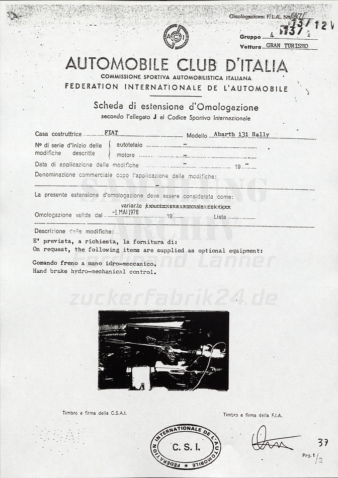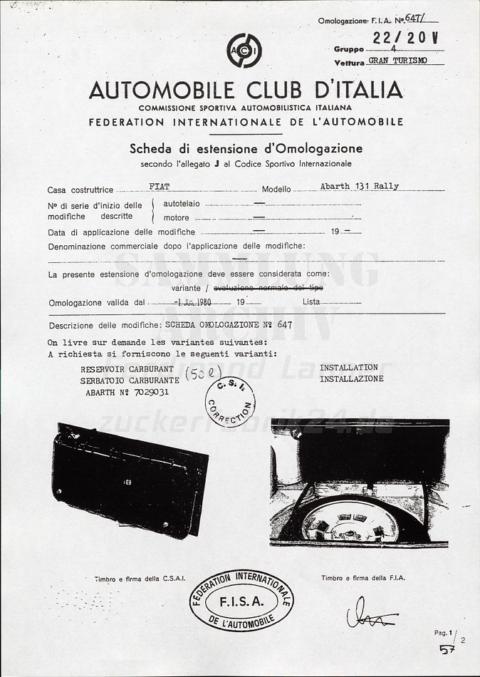Die Homologationsversion Fiat Abarth 131 Rally 'Stradale' (min. 400 Stück für Gruppe 4-Homologation) wurde mit