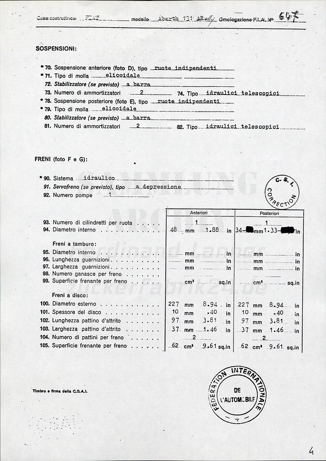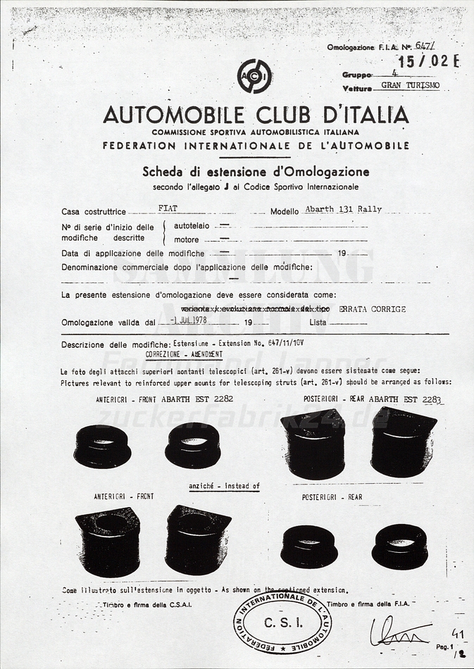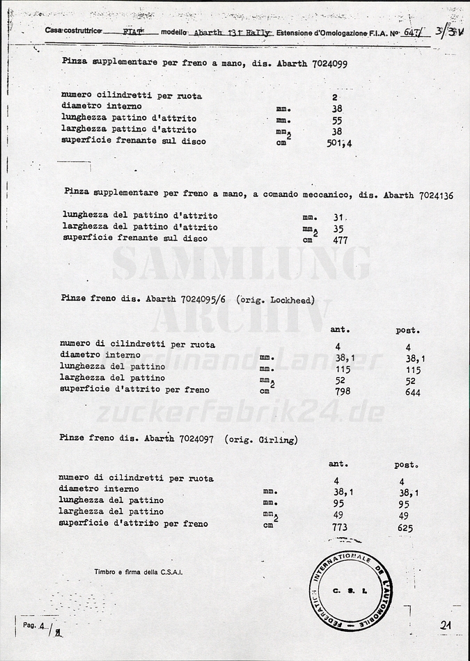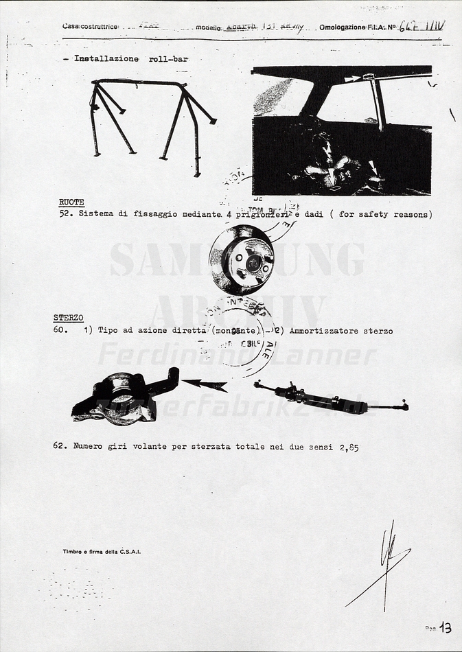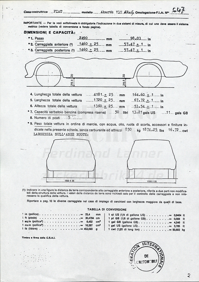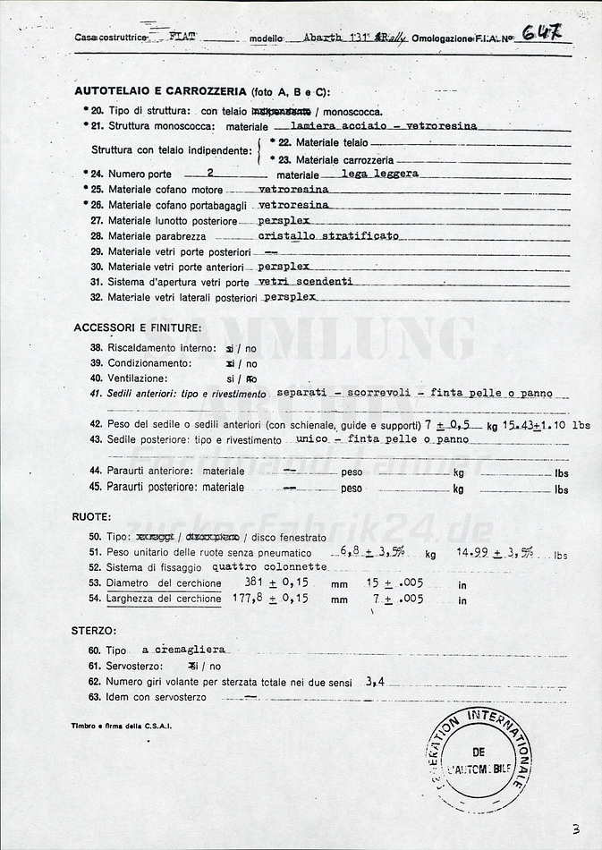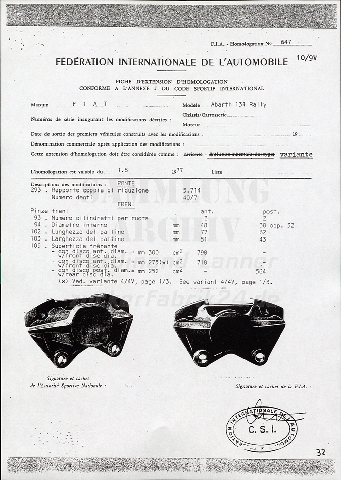 Bem. es gab Seltsamkeiten - um das Homologationsgewicht niedrig zu halten wurden z.B. die Bremsen des Fiat 127 (d 227/227) eingebaut,