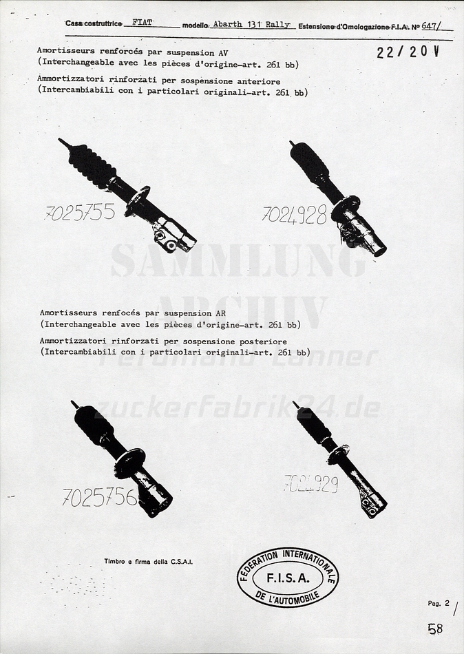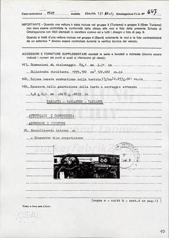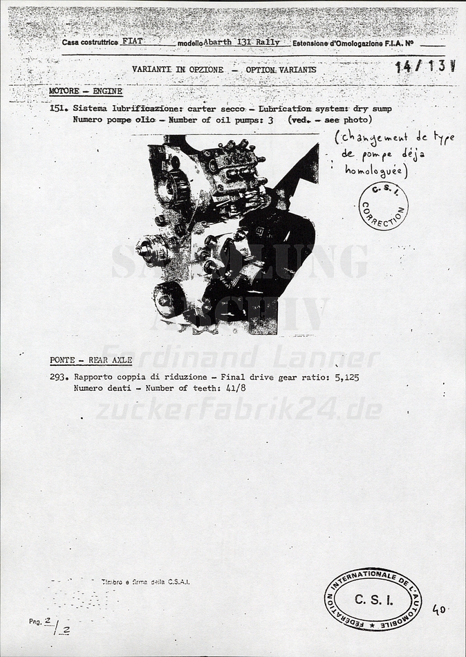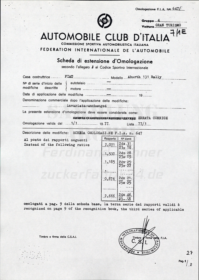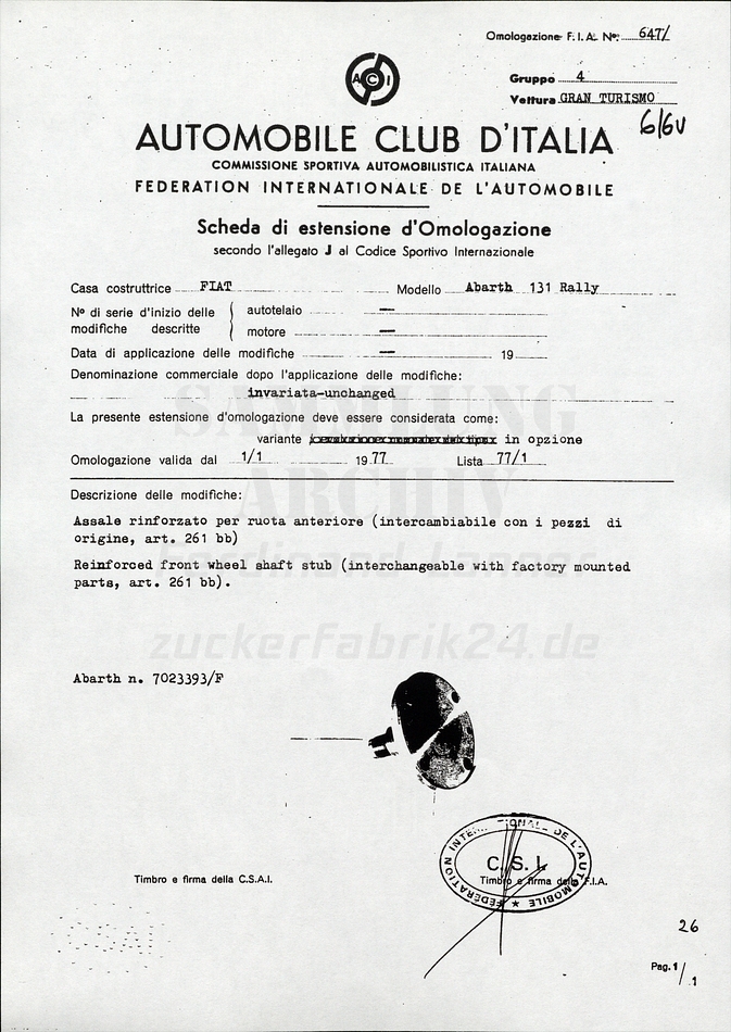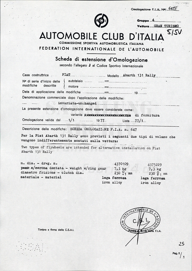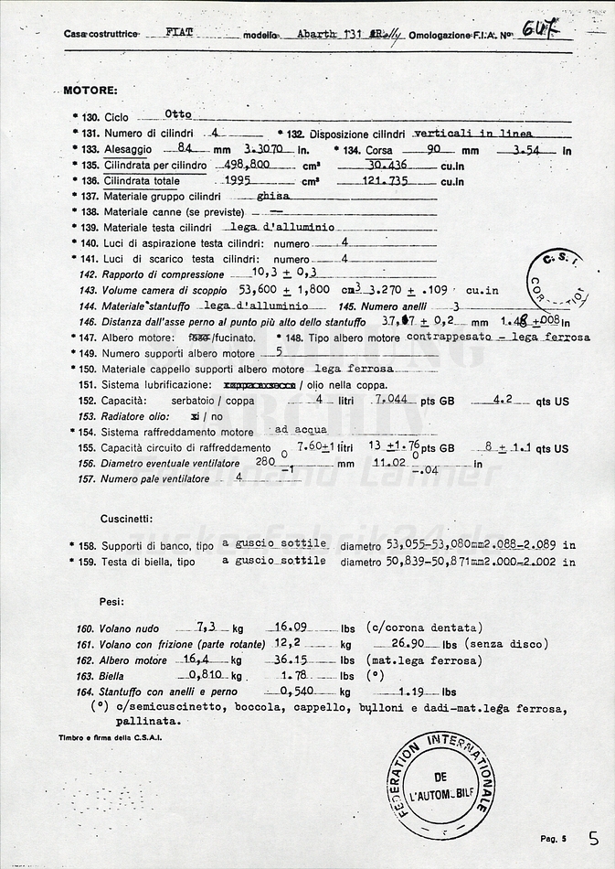 Bem. es gab Seltsamkeiten - um das Homologationsgewicht niedrig zu halten wurden z.B. die Bremsen des Fiat 127 (d 227/227) eingebaut,