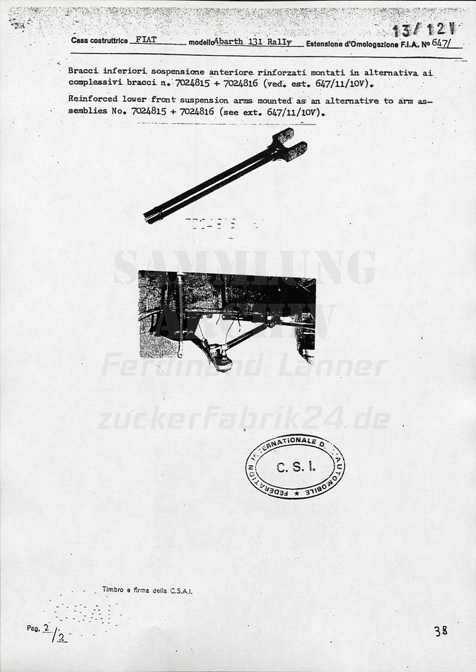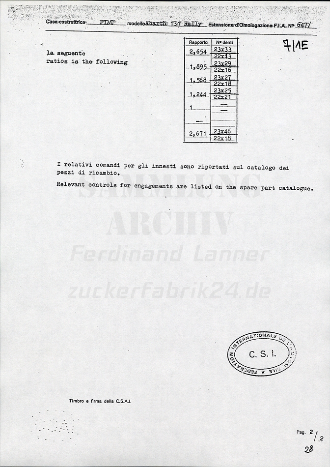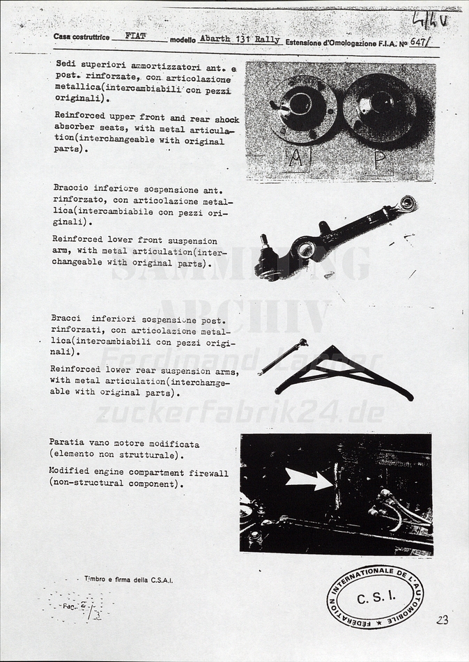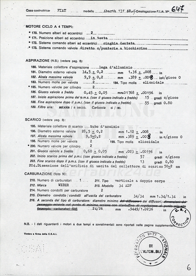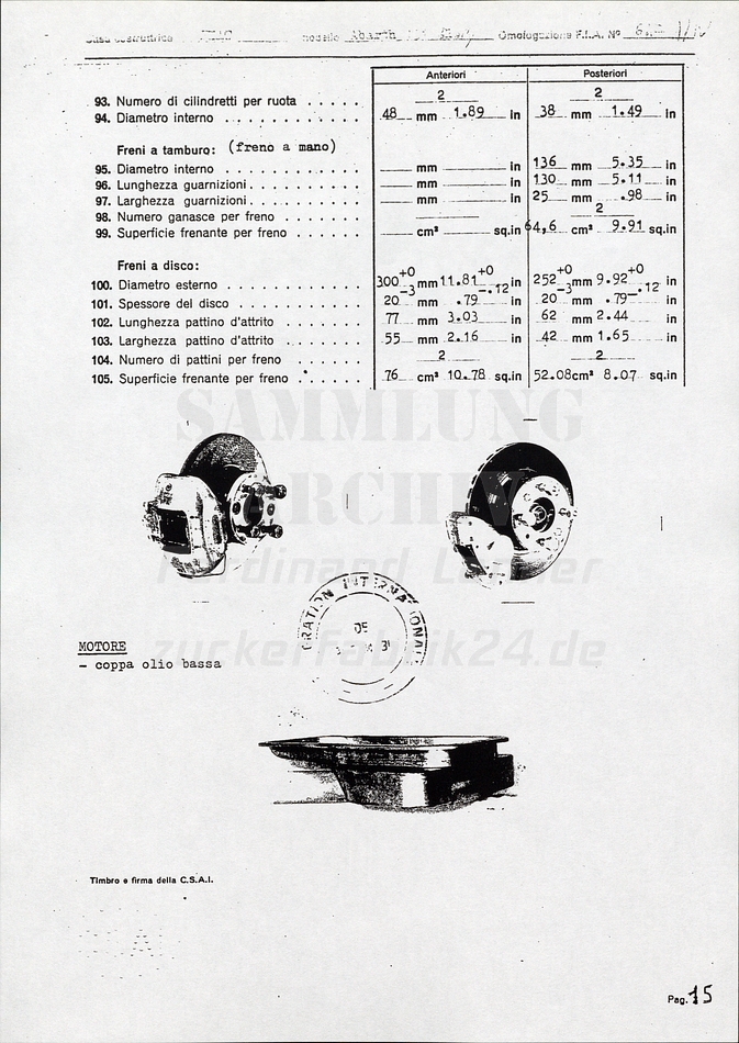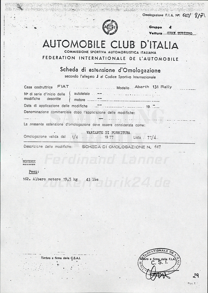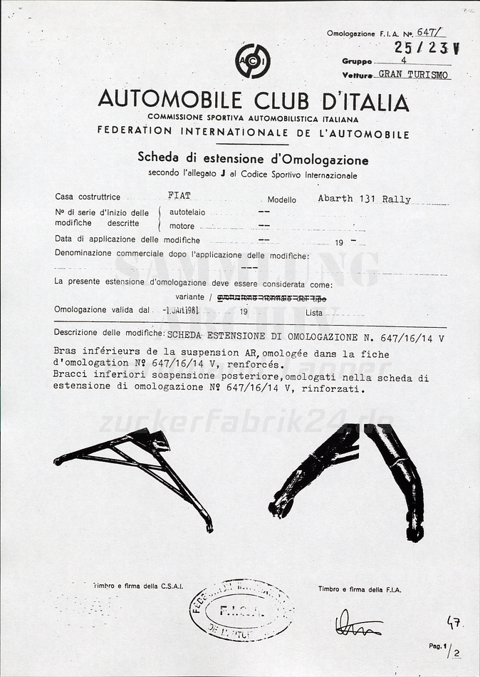 Bem. es gab Seltsamkeiten - um das Homologationsgewicht niedrig zu halten wurden z.B. die Bremsen des Fiat 127 (d 227/227) eingebaut,