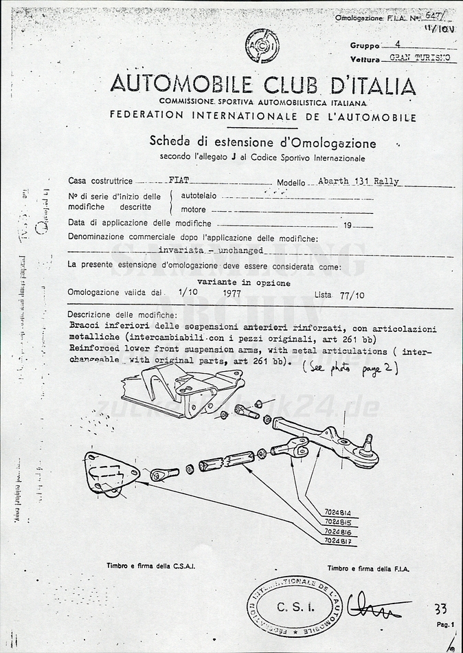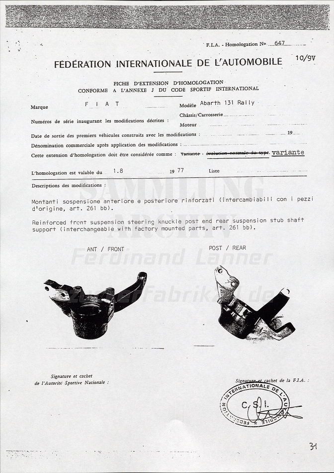 Der Abarth SE031 war damit so etwas wie das Muster für den 'Fiat Abarth 131 Rally', der bereits im Januar 1976 homologisiert wurde - s.u.