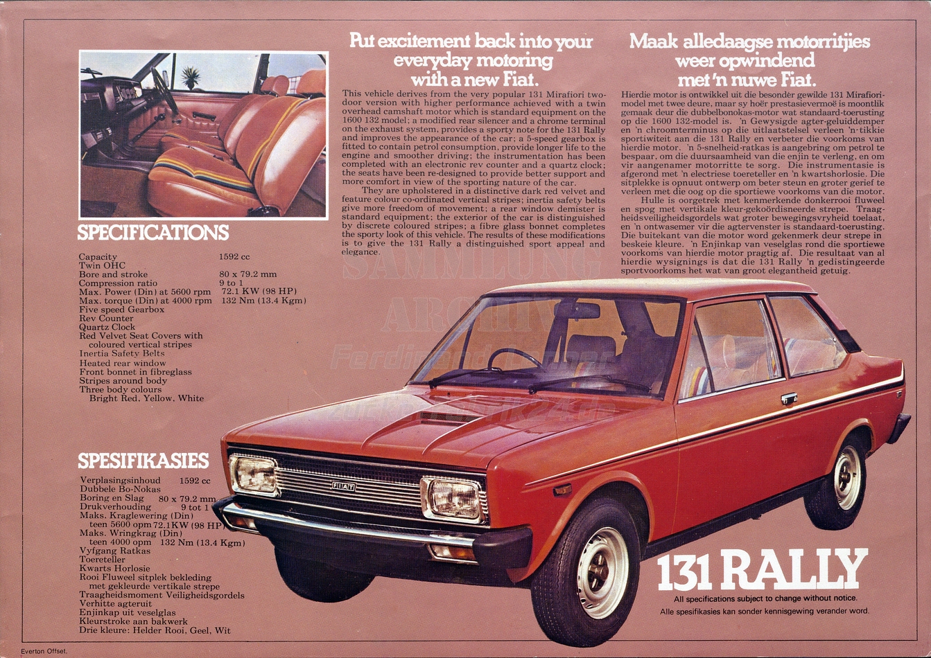 Prospekt Fiat 131 Rally (1600 TC)- ZA - Rep. Südafrika - ca. 1977