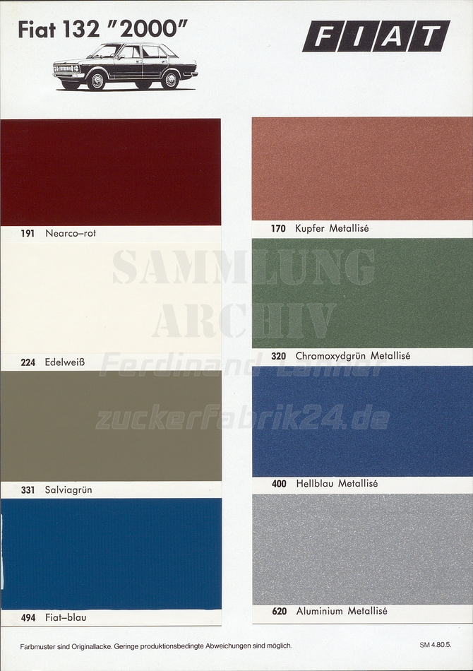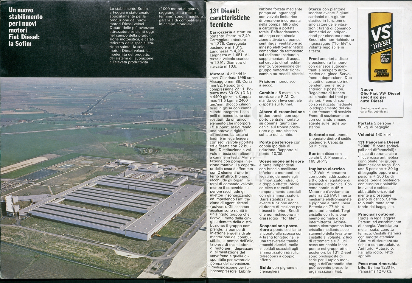1978 wurde der Fiat 132 Diesel 2000 mit Sofim 8144.65 (1995 ccm) (nicht in allen Ländern) und Fiat 132 Diesel 2500 mit Sofim 8144.61 (2445 ccm) vorgestellt. - Sofim ist ein Diesel-Motoren-Hersteller (Societe franco-italienne de moteurs), Fabrik in Foggia, der 1973 von Fiat zusammen mit Alfa Romeo und Saviem (Renault) gegründet wurde. Bei Sofim wurden ab 1974 2.0 und 2.5 ltr Dieselmotoren für Transporter und Pkw hergestellt.