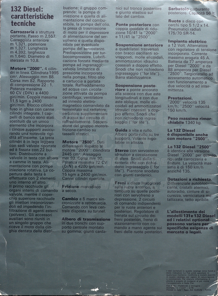 Prospekt Fiat Diesel 131 / 132 2000 D und 2500 D - Nr. 0732 - 4-1978 - I
