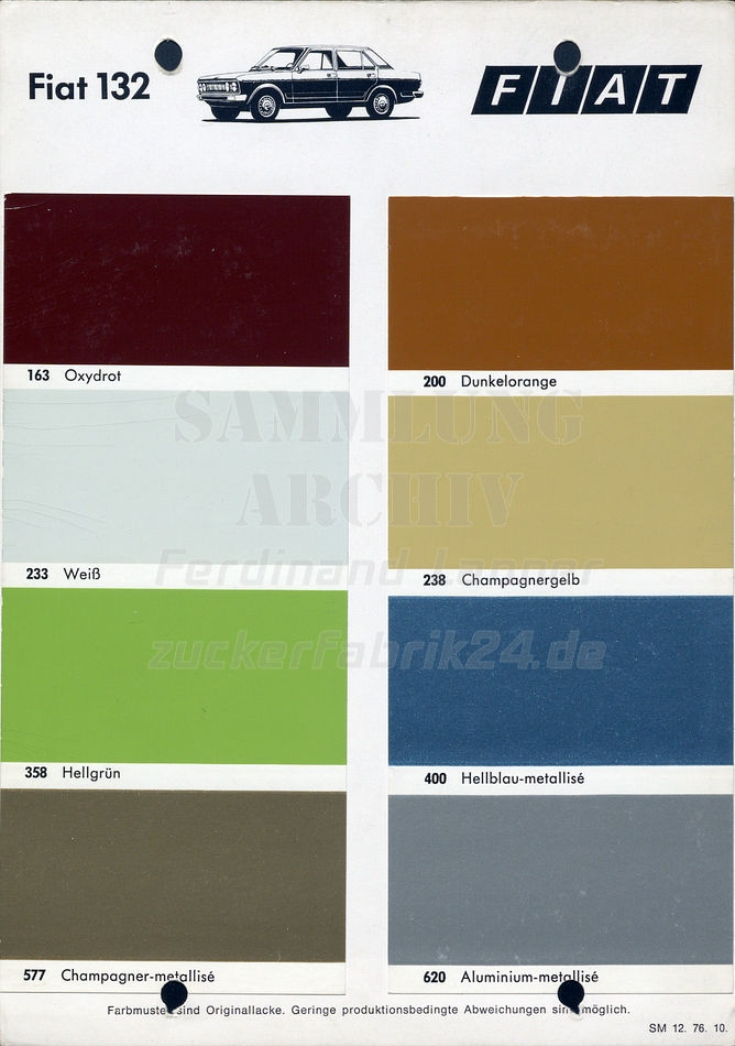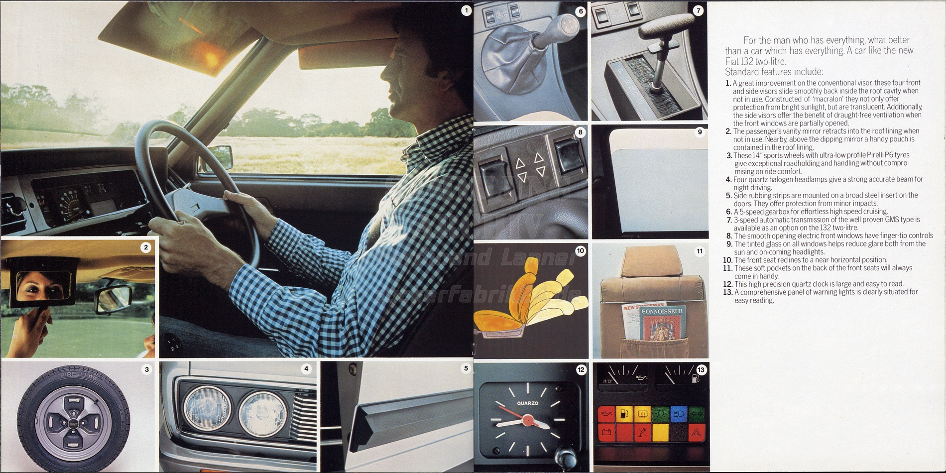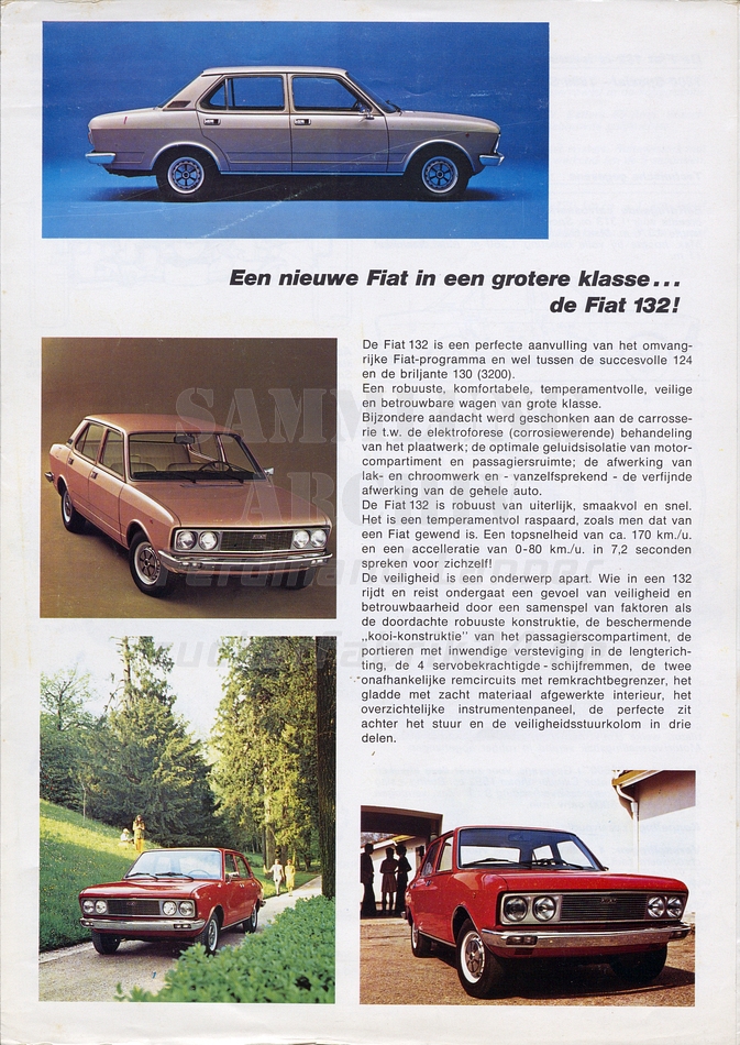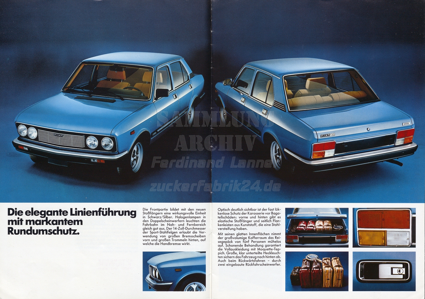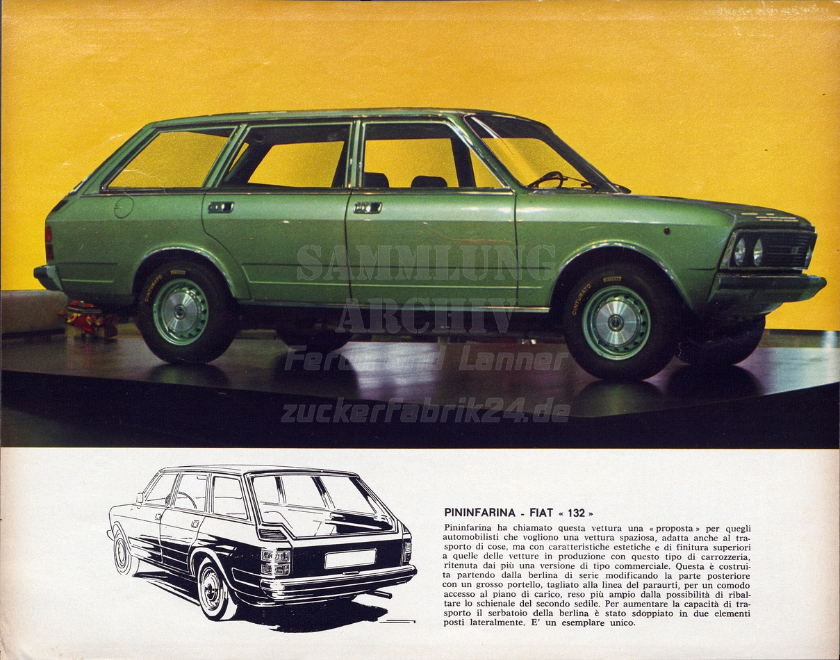 Im Mai 1972 wurde der Fiat 132 mit 1600 und 1800 ccm Motoren als Nachfolger des Fiat 125 und 125 S vorgestellt. Für den Fiat 132 1600 gab es auch eine sparsamere Ausstattung, erkennbar an der anderen Front. - 1974 folgte eine modifizierte Version.