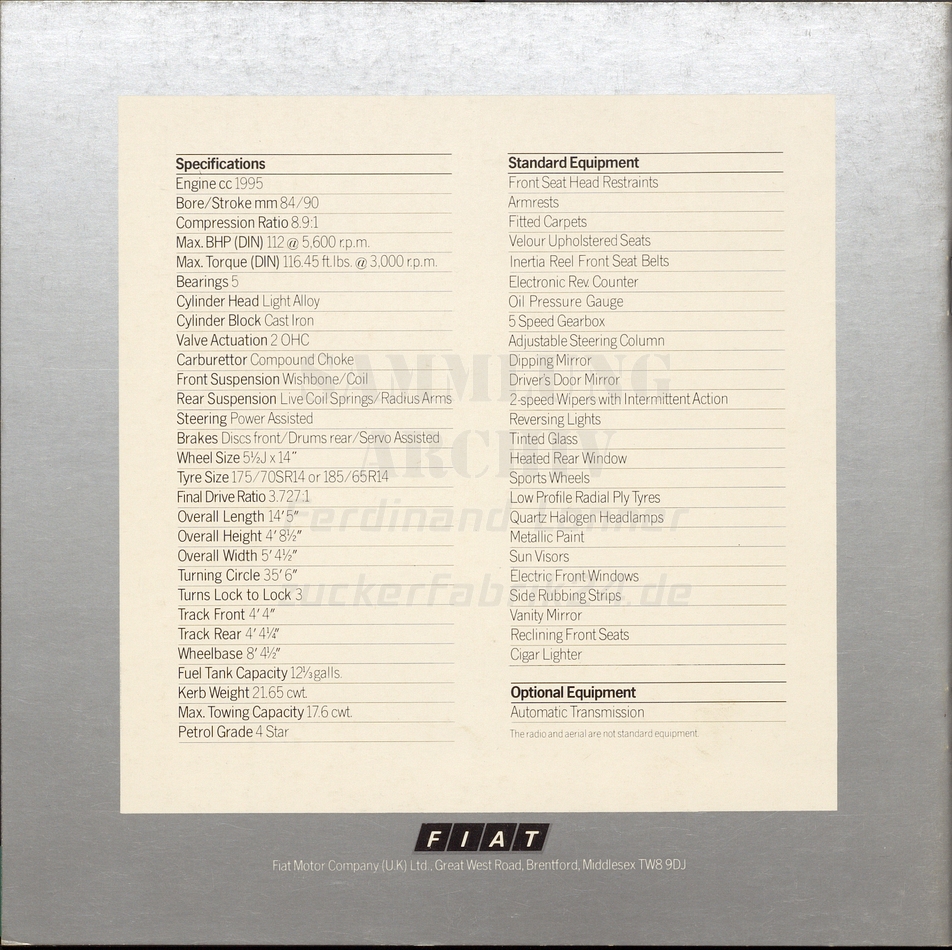 Prospekt Fiat 132-2000 - ca.1977 - UK