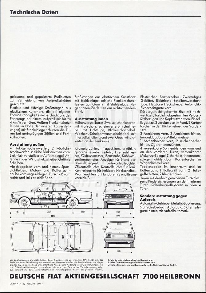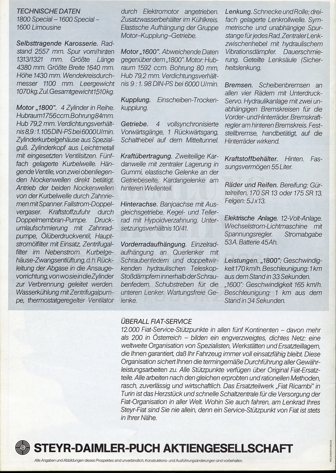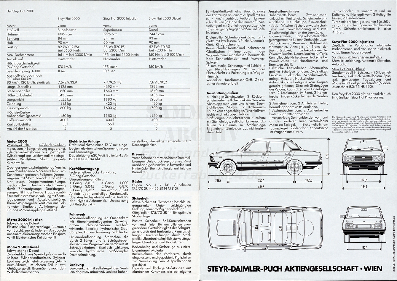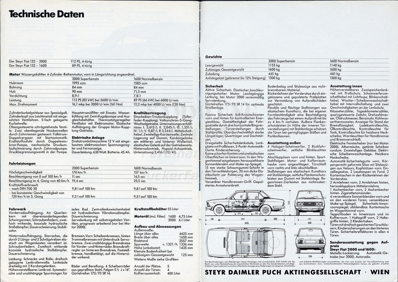Prospekt Fiat 132-2000, 2000 ie, 2500 Diesel - Steyr - 2-1980 - A