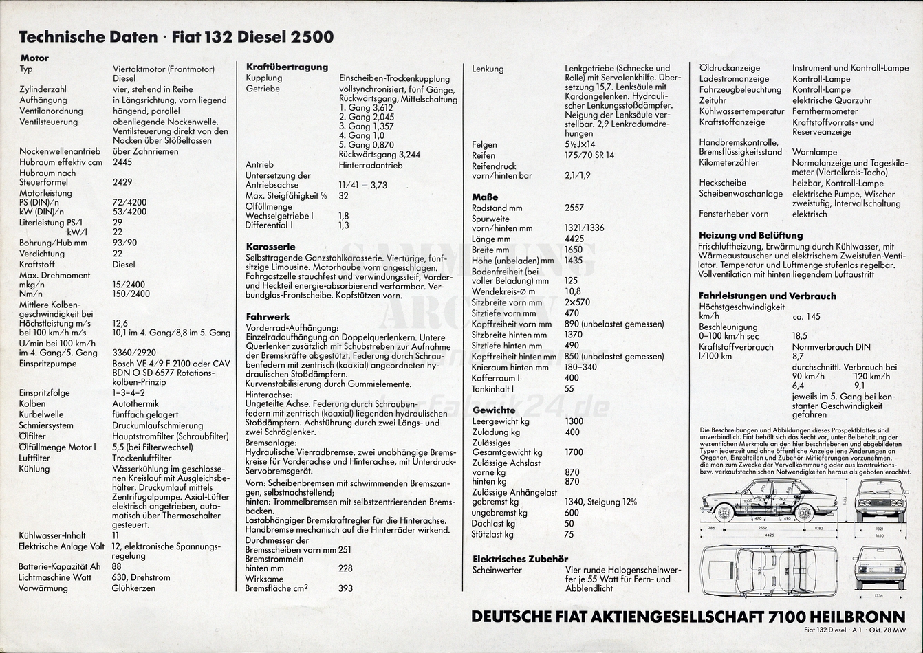 Prospekt Fiat 132 Diesel 2500 - deutsche Fiat - 10-1978