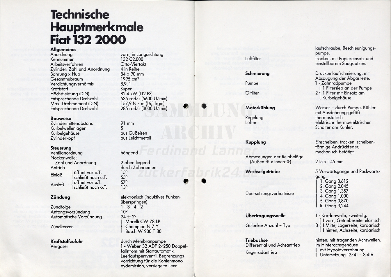 5-Gang-Getriebe oder 3-Gang GM-Automatic (wie Fiat 125 S und 124 ST).