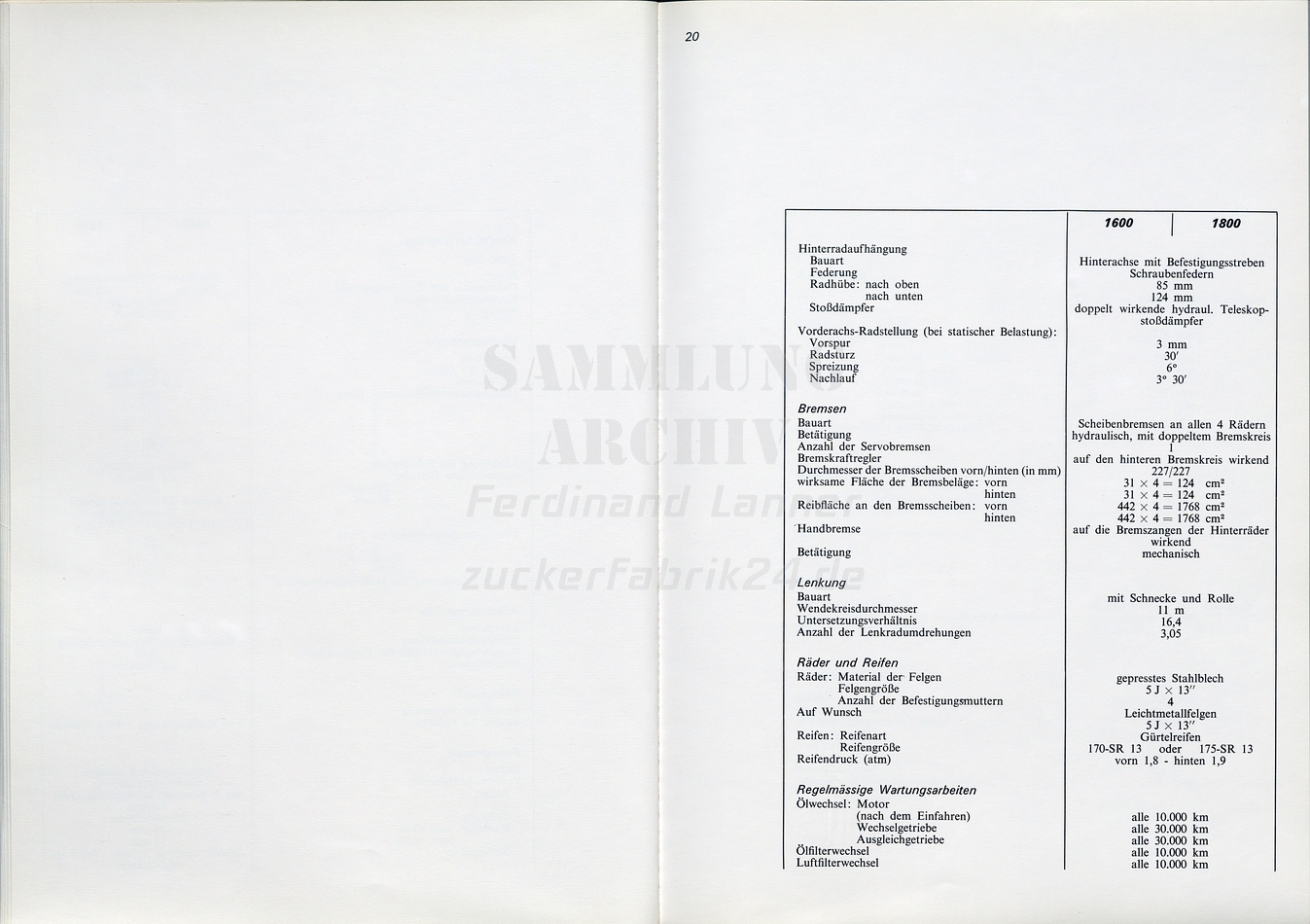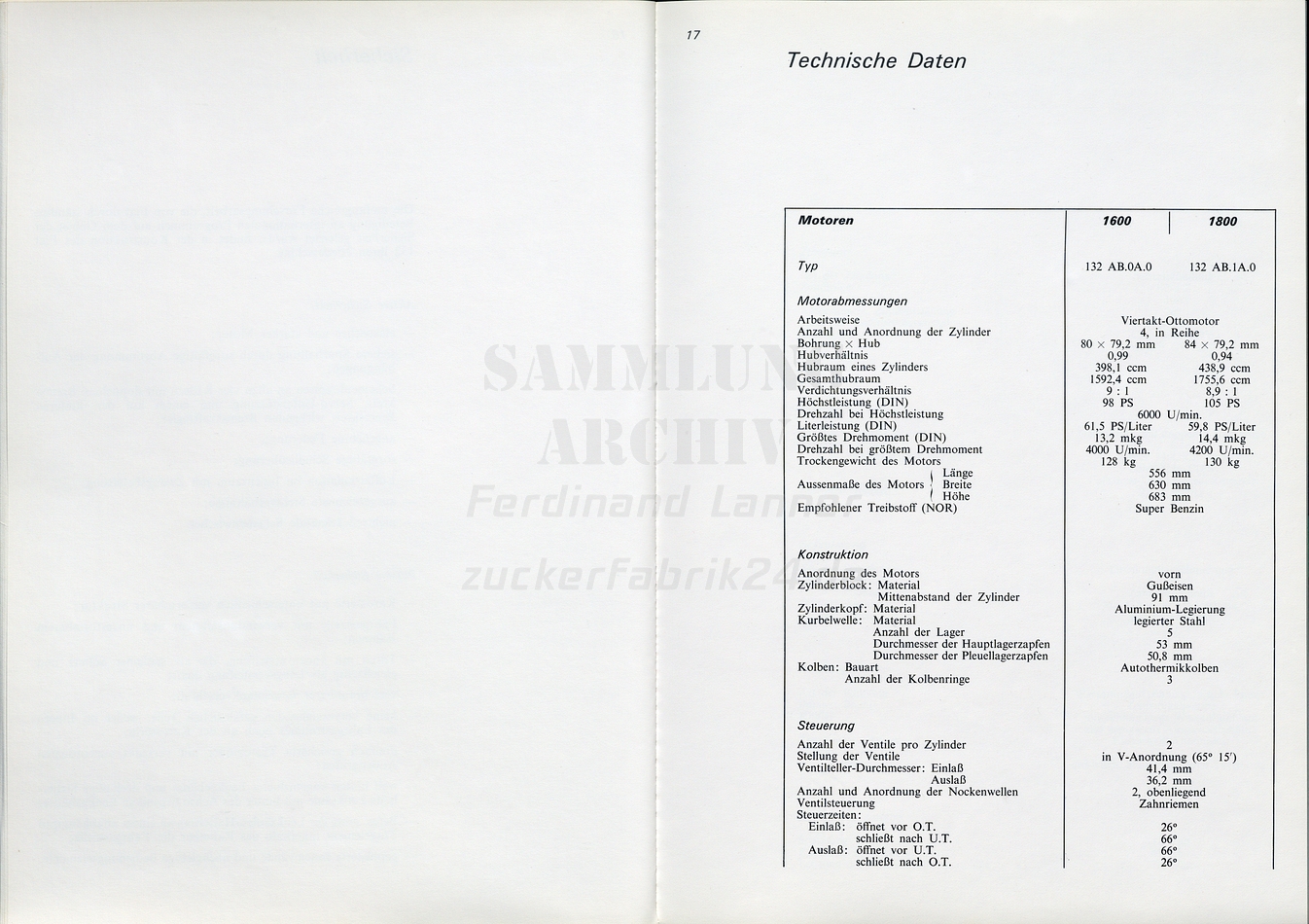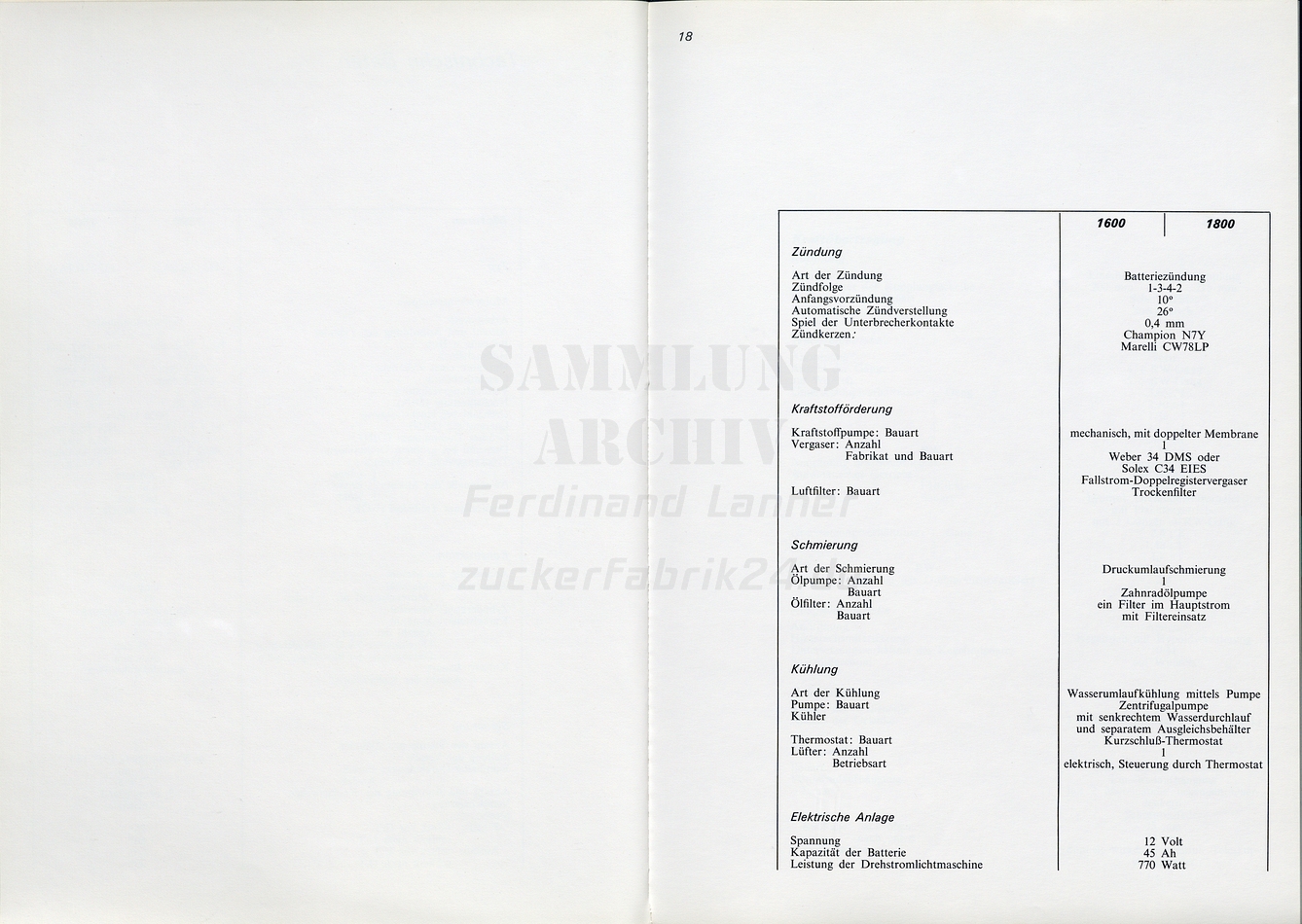 Für beide Typen gab es optional Drehzahlmesser, heizbare Heckscheibe, für den 1800 Special a.W Klimaanlage, Sperrdifferential,