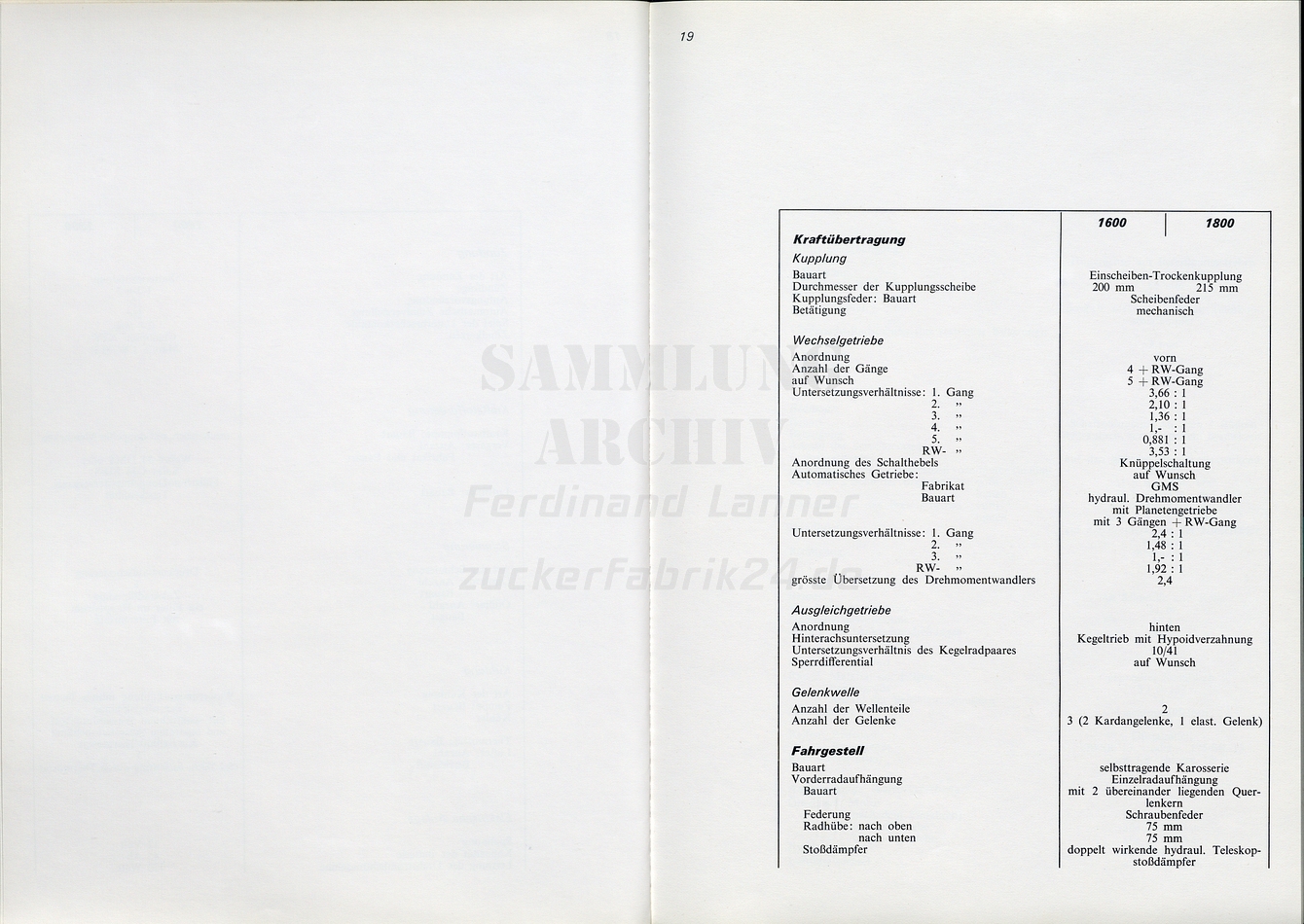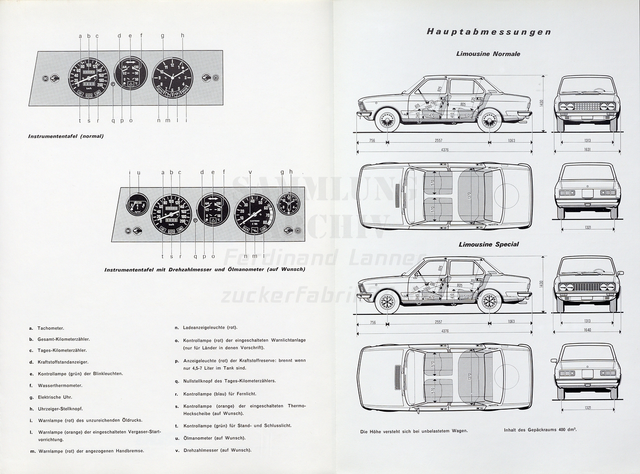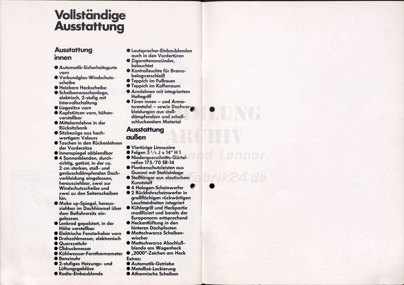 Für beide Typen gab es optional Drehzahlmesser, heizbare Heckscheibe, für den 1800 Special a.W Klimaanlage, Sperrdifferential,