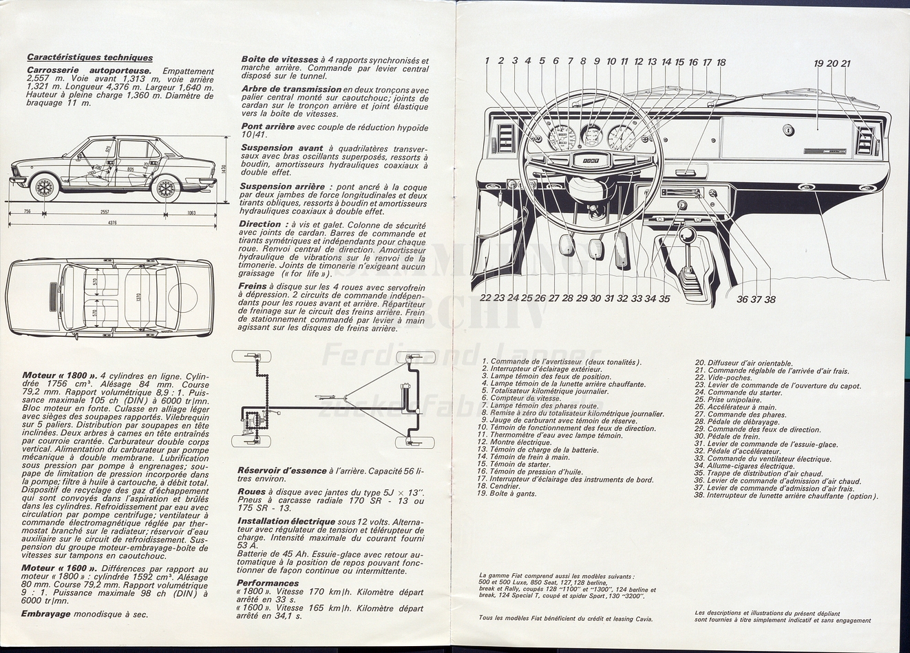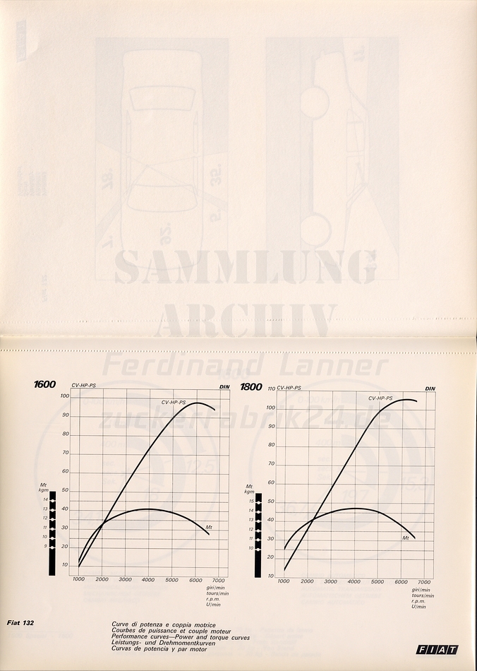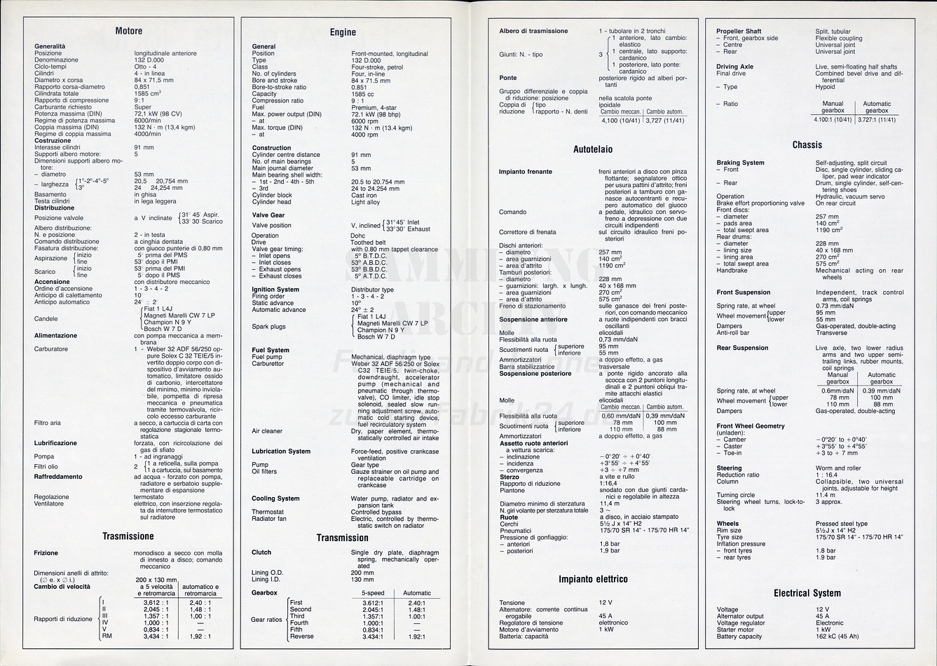 Die Rolle der stärkeren Motorisierung (wie vorher beim Fiat 125/125 S) übernahm der Motor '1800' mit 1756 ccm (Bohrung 84mm, bei gleichem Hub) und 105 PS.