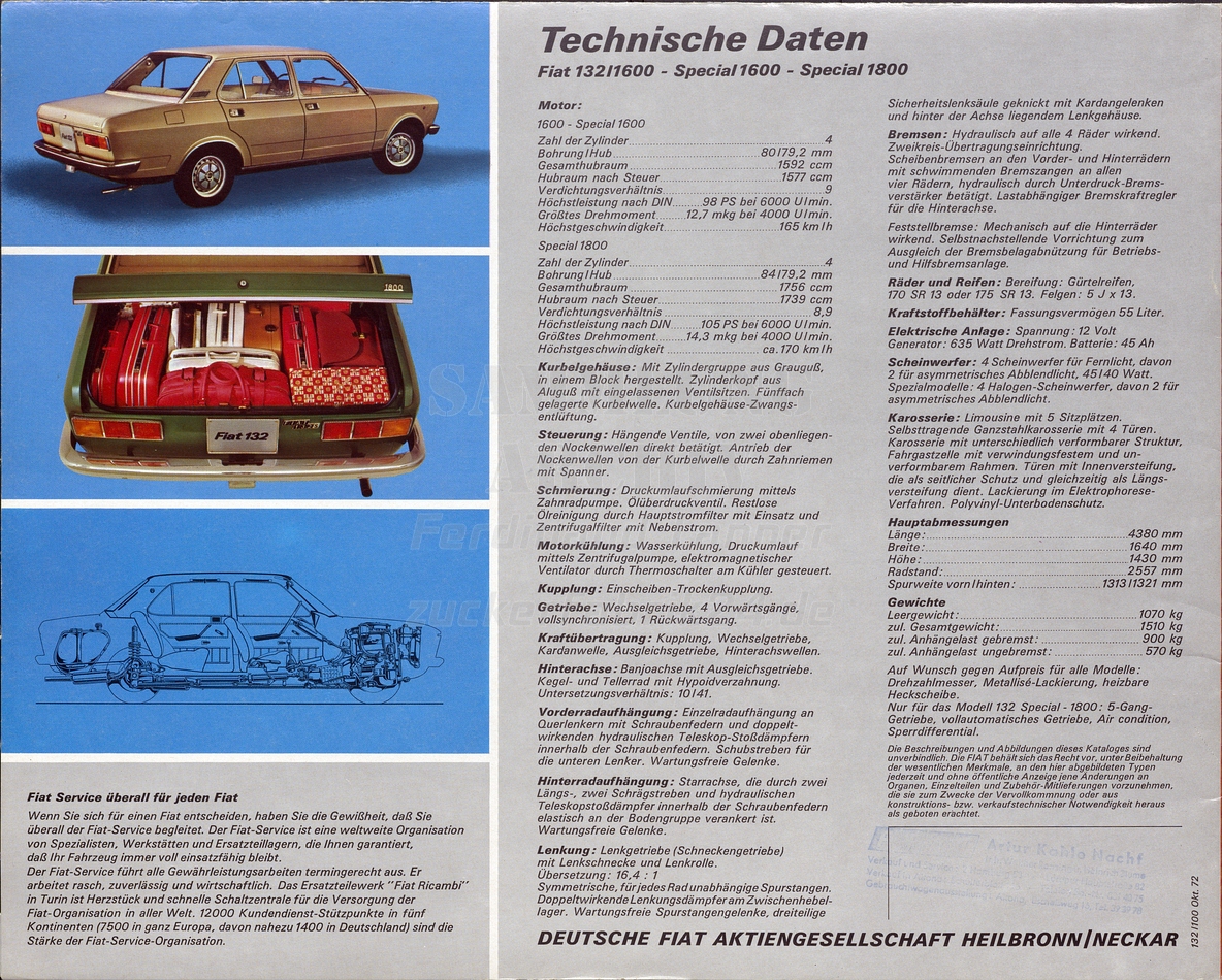 Prospekt Fiat 132 - deutsche Fiat - 10-1972