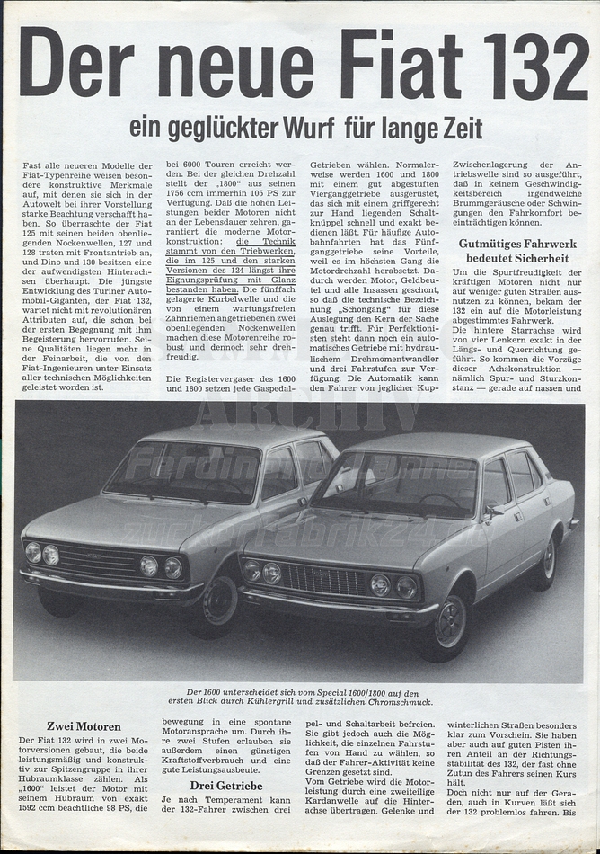 Presse- u. Händlerinformation Fiat 132 - 6-1972