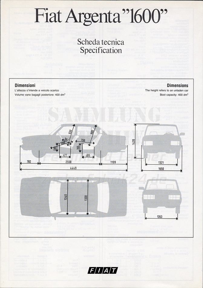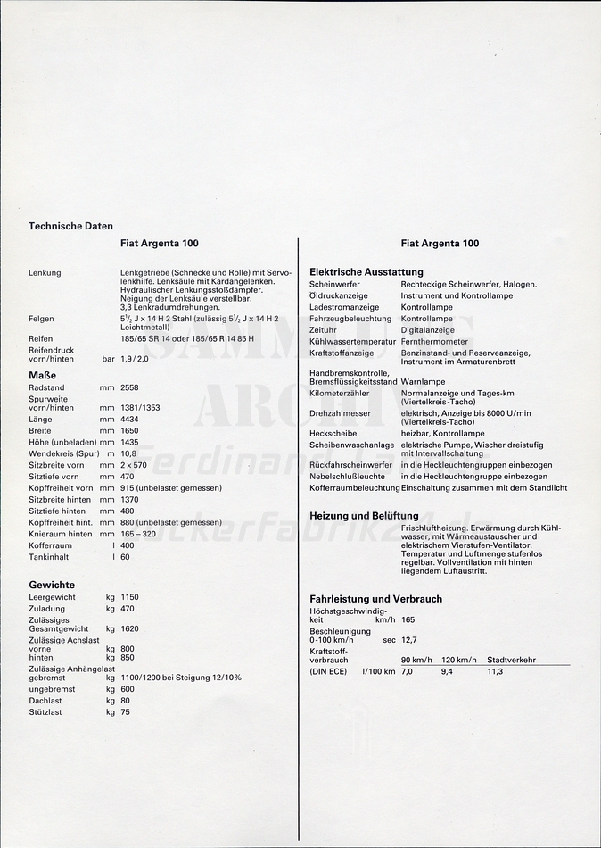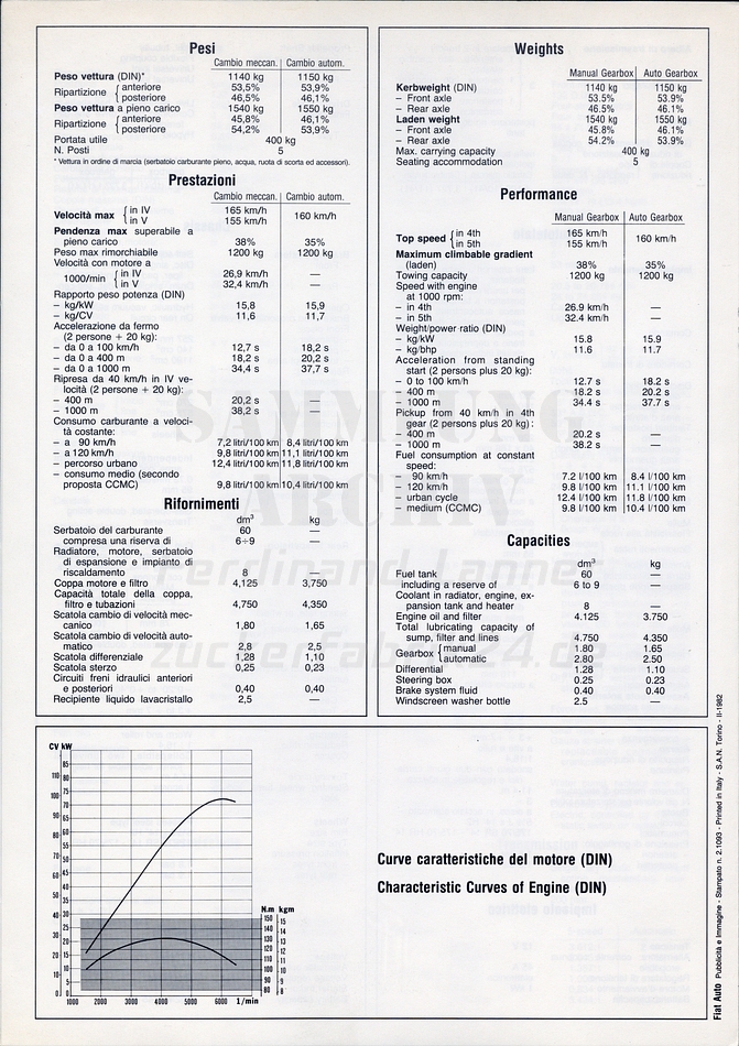 Prospekt, techn. Daten - Fiat Argenta 1600 - 2-1982 - I / engl