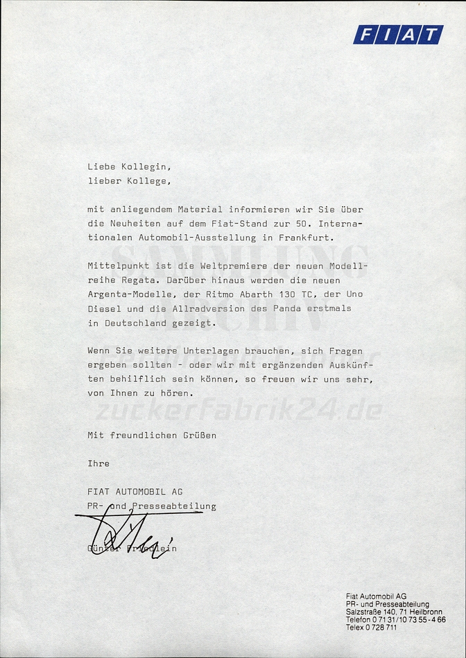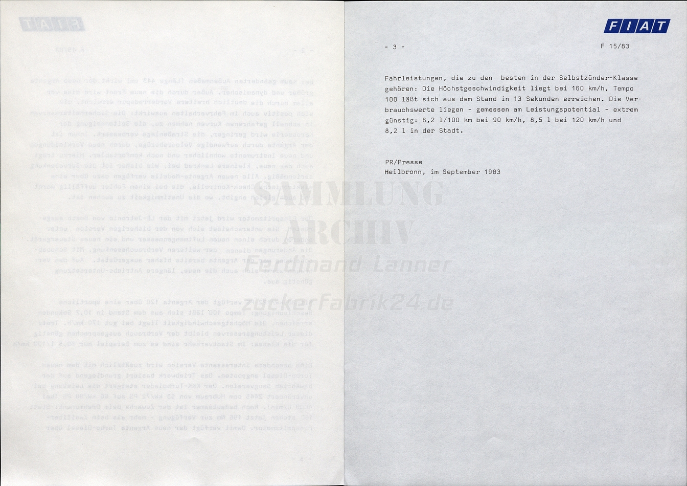 Presseinformation Fiat Argenta - 9-1983 - IAA-D