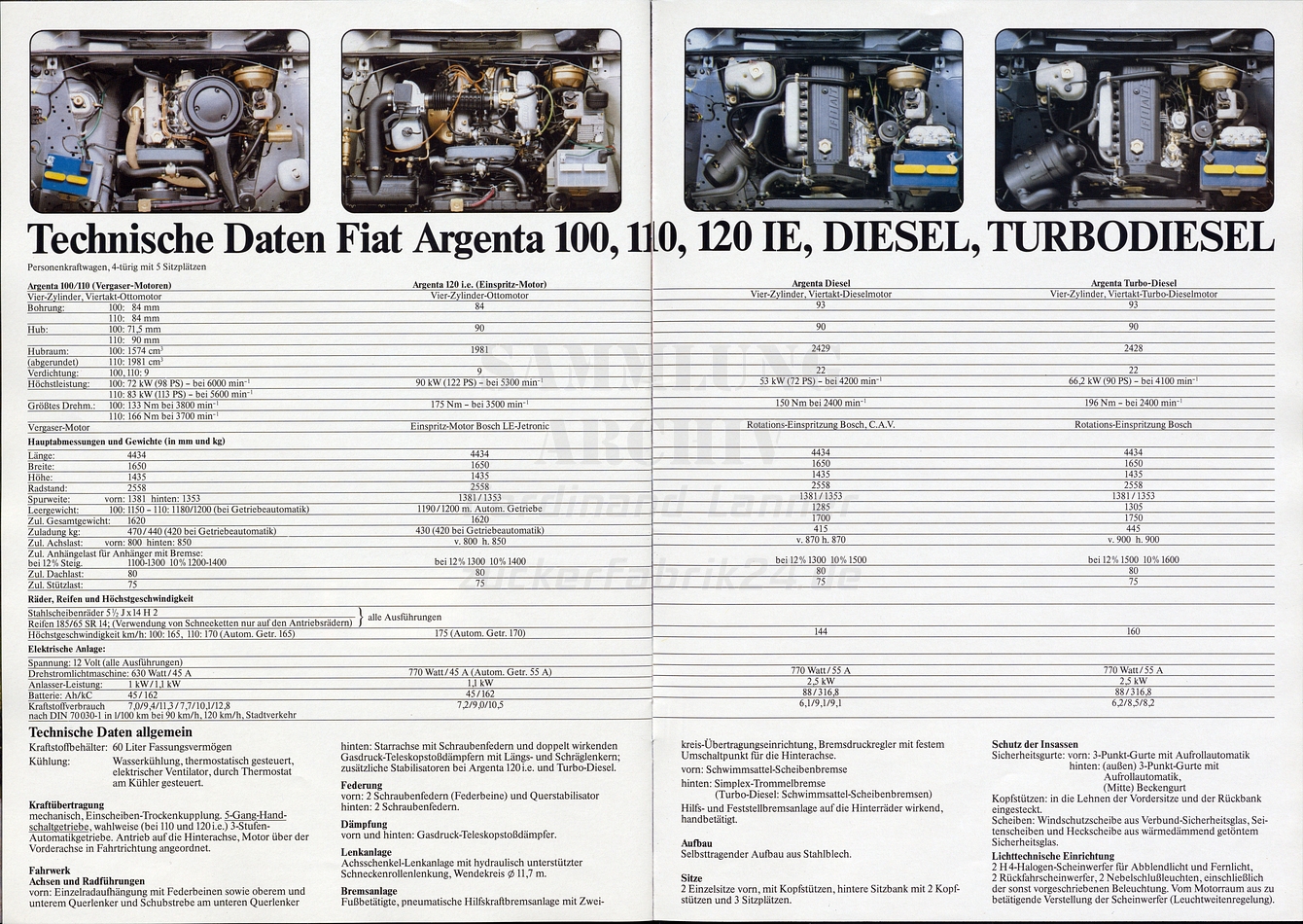 Prospekt Fiat Argenta 100, 110, 120 ie, Diesel, Turbo Diesel - deutsche Fiat - 8-1983