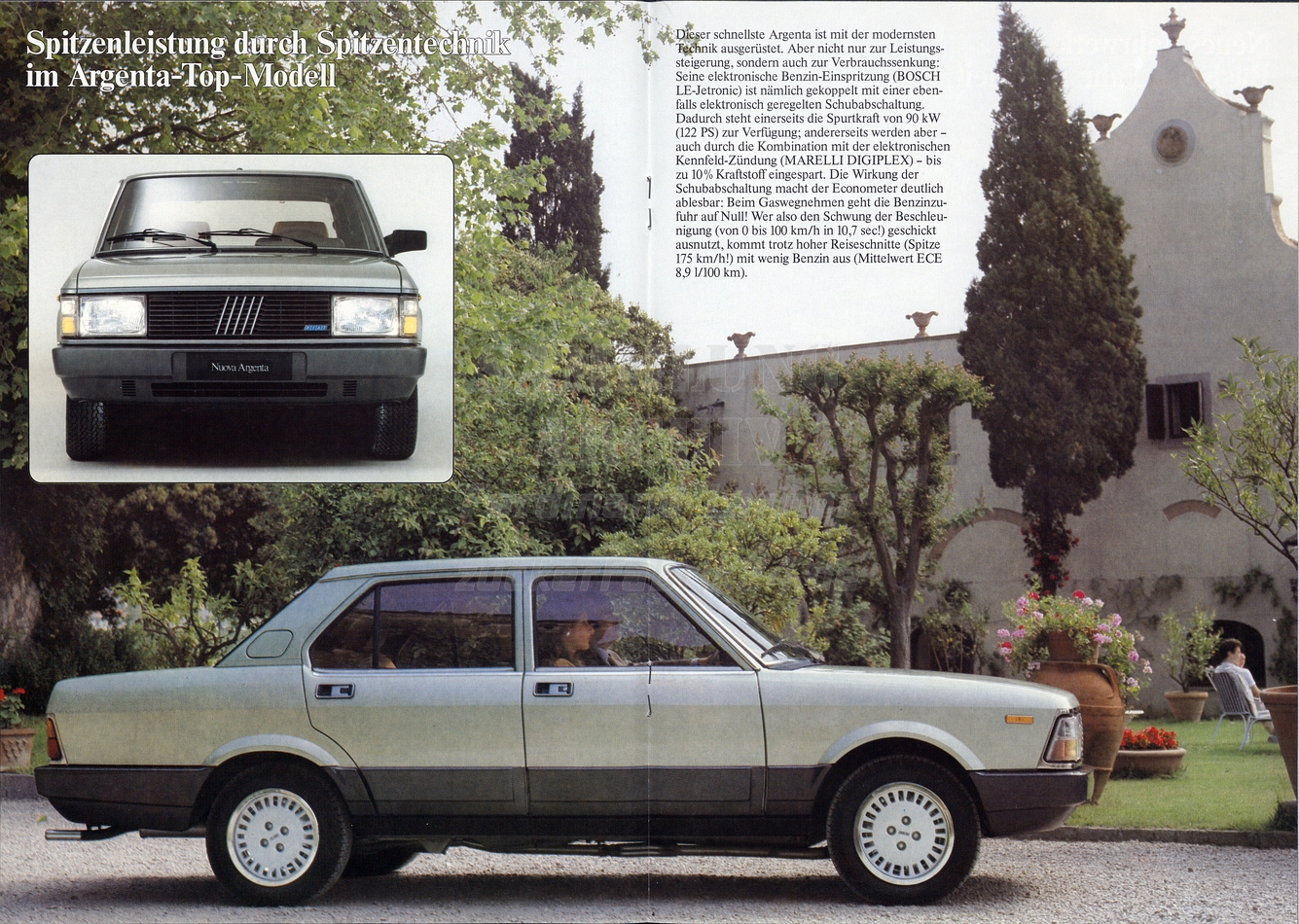 - Außerdem kam auf einigen Märkten noch der 'Argenta Volumex' dazu, mit LE-jetronic und Roots-Lader (135 PS), wie im Fiat/Pininfarina Spider Volumex und in Lancia-Fahrzeugen.