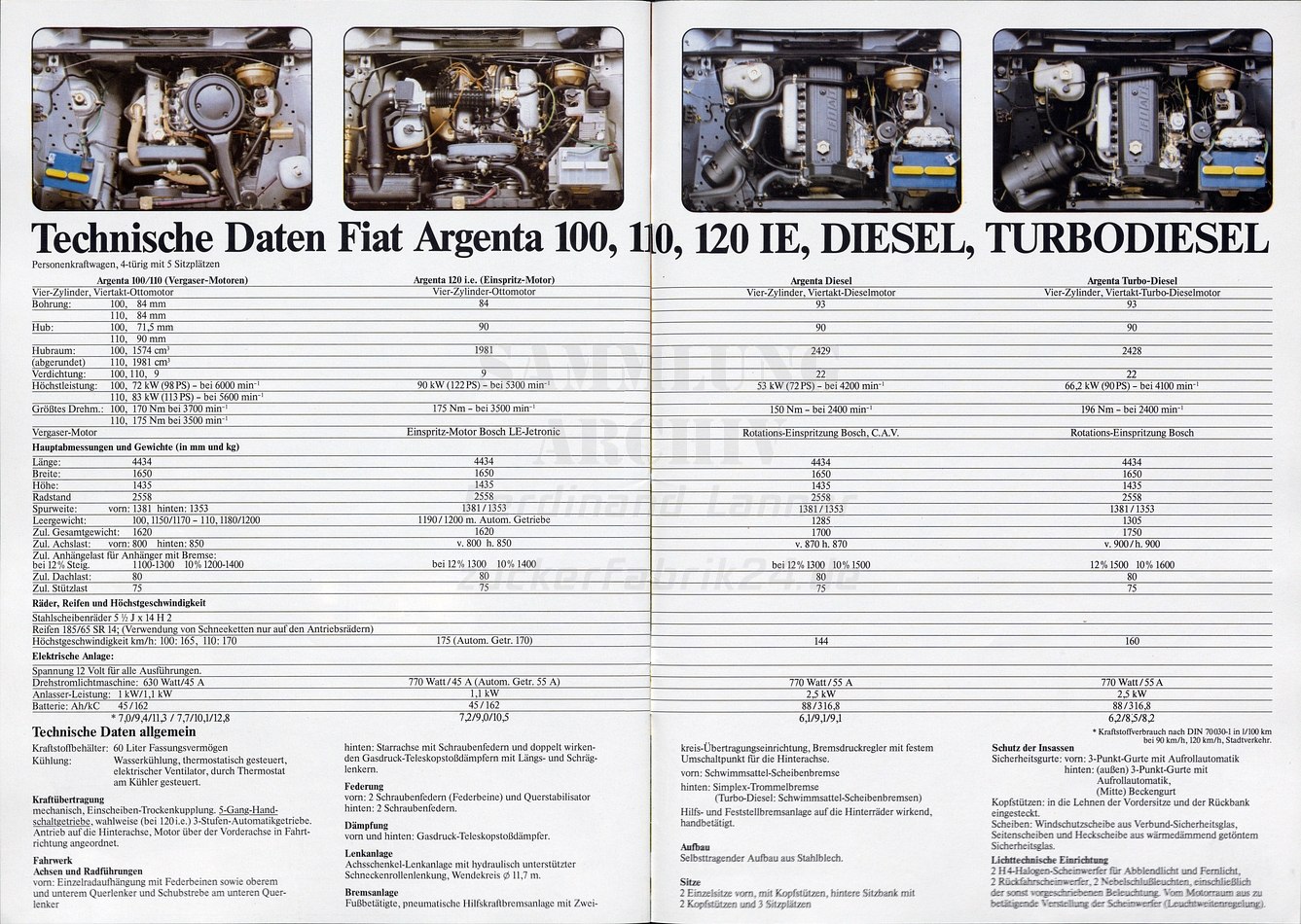 Prospekt Fiat Argenta 100, 110, 120 ie, Diesel, Turbo Diesel - deutsche Fiat - 2-1984