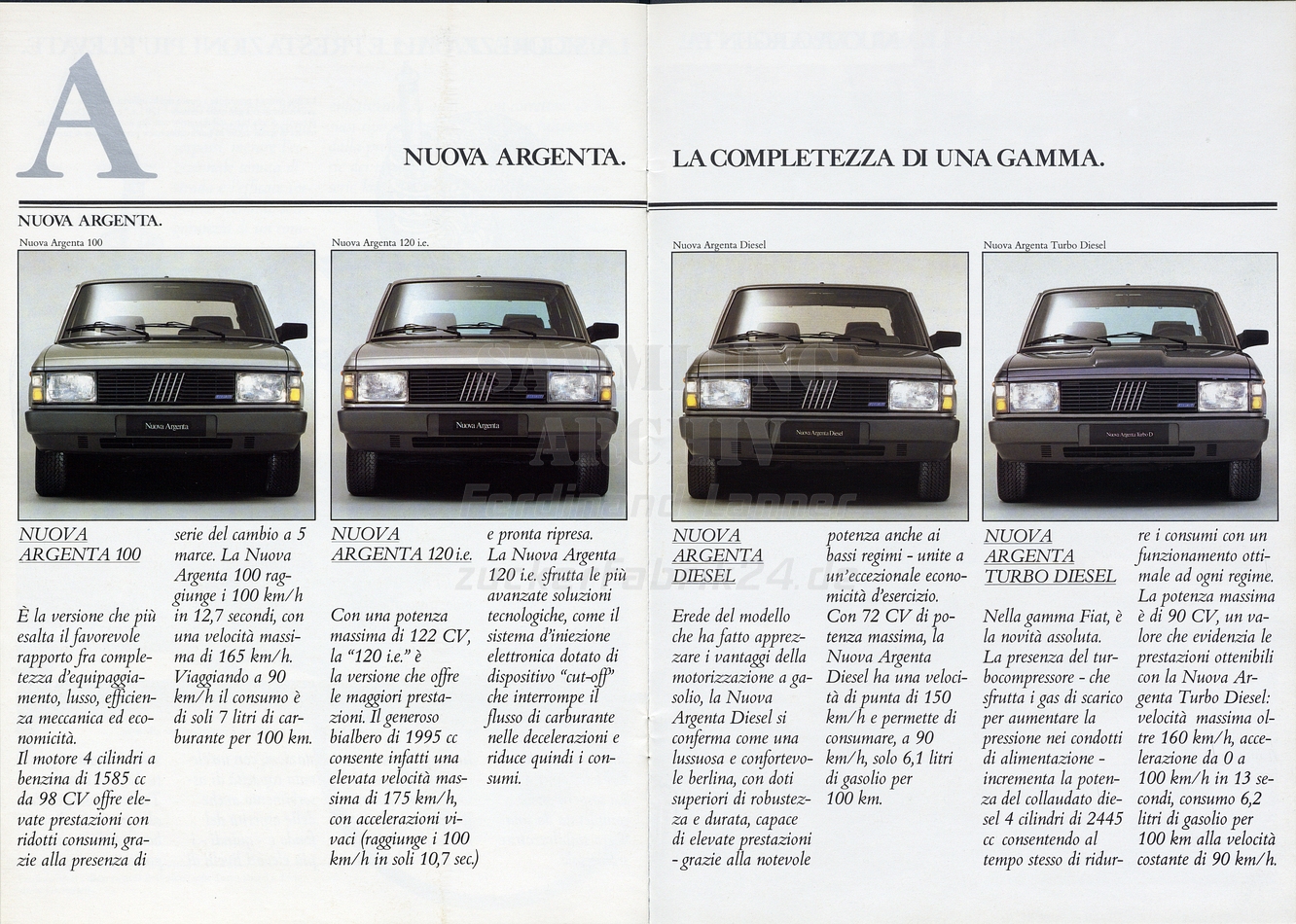 Die Versionen ab 1983 bekam neue Bezeichnungen : Argenta 100 (1600), 110 (2000 Vergaser), 120ie (2000 Einspritzer, jetzt mit LE jetronic), Argenta Diesel (2500) und Turbo Diesel (mit Ladeluftkühler, 90 PS)