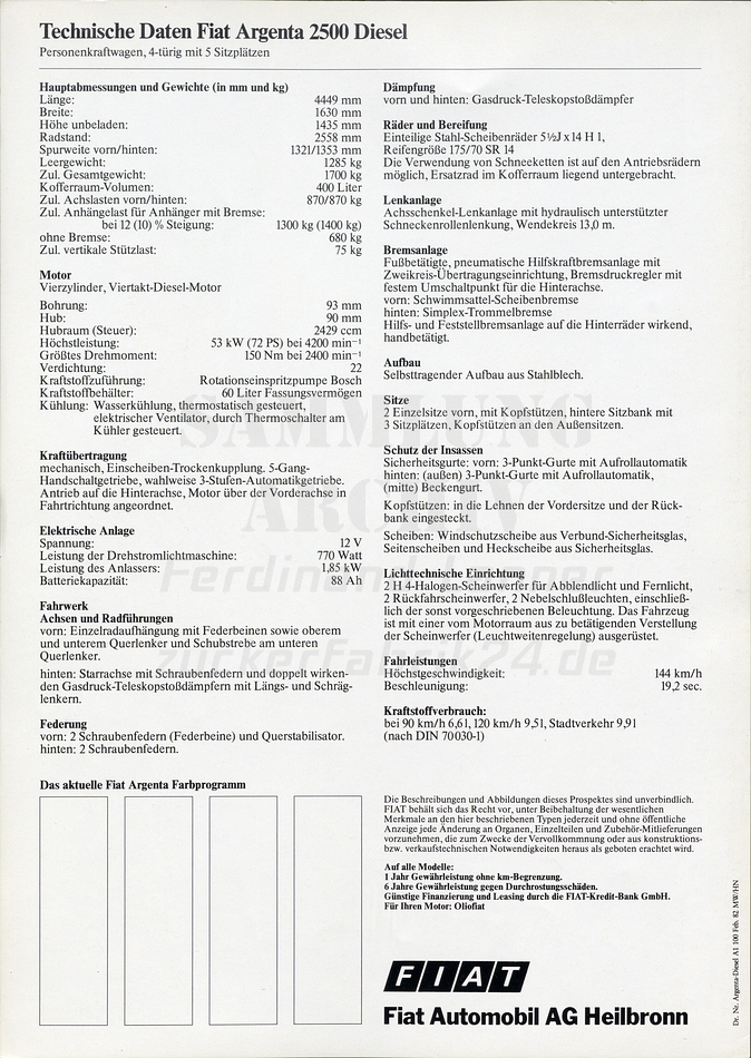 Prospekt Fiat Argenta Diesel - deutsche Fiat - 2-1982