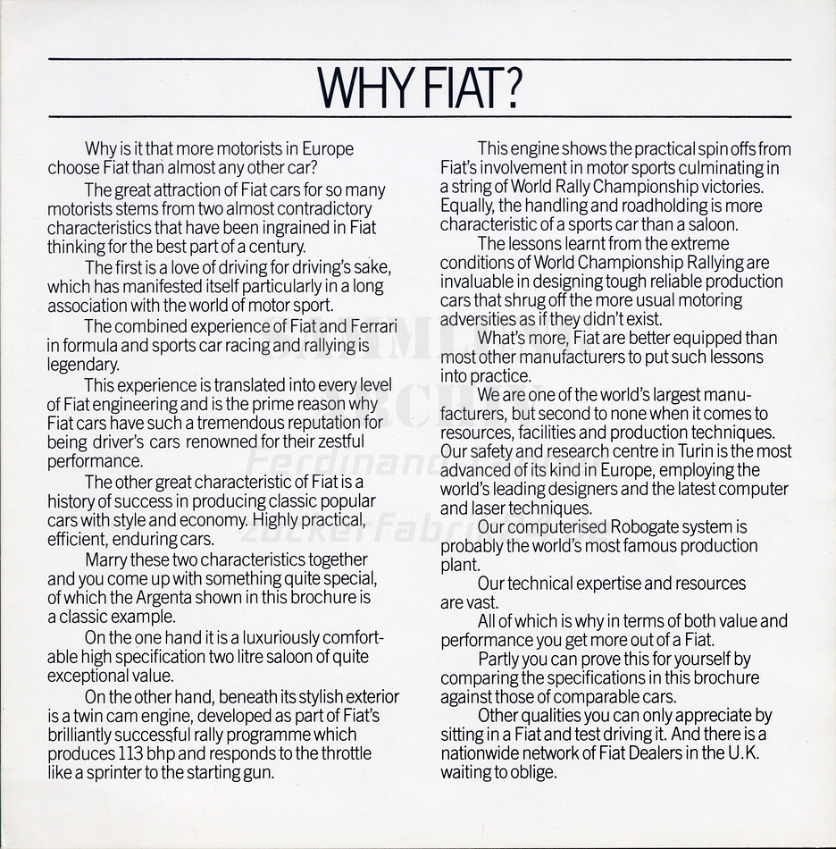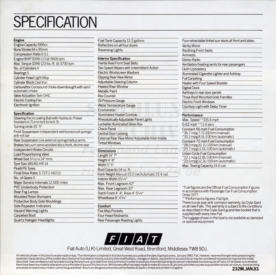 Prospekt Fiat Argenta 2000 - 1-1983 - UK