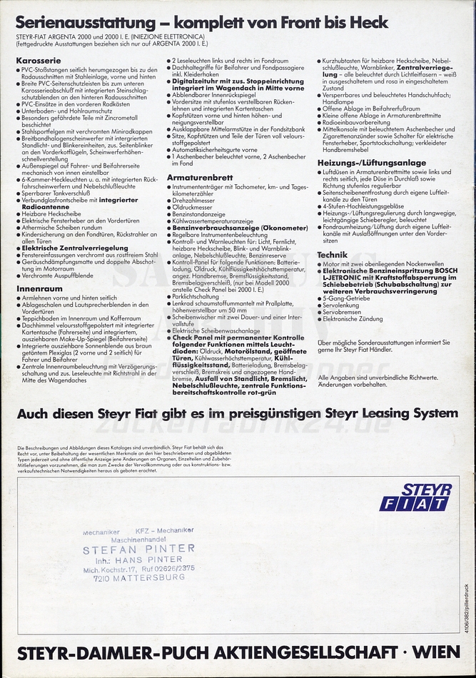 Prospekt Fiat Argenta 2000, 2000 ie - Steyr - 2-1982 - A