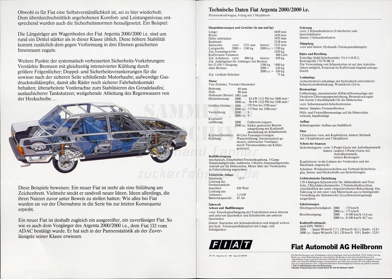 Prospekt Fiat Argenta 2000, 2000 ie - deutsche Fiat - 9-1981