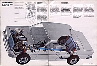 - Das Fahrwerk war mit Schraubenfedern und Lägslenkern an der Hinterachse und anderer Vorderachs-Geometrie neu konzipiert,