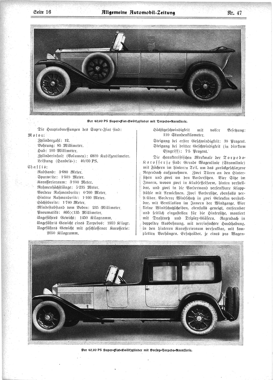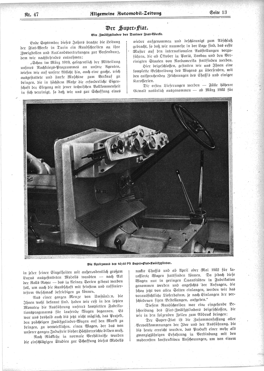 Fiat 'Superfiat' - V 12 -   1921 -- siehe unten